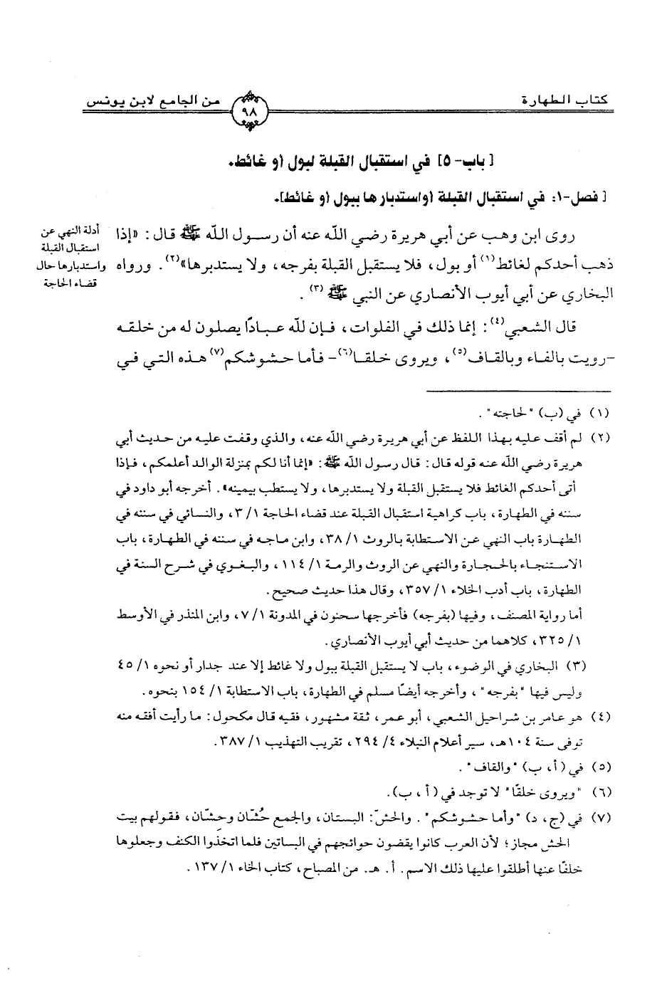 [باب-5] في استقبال القبلة لبول أو غائط.