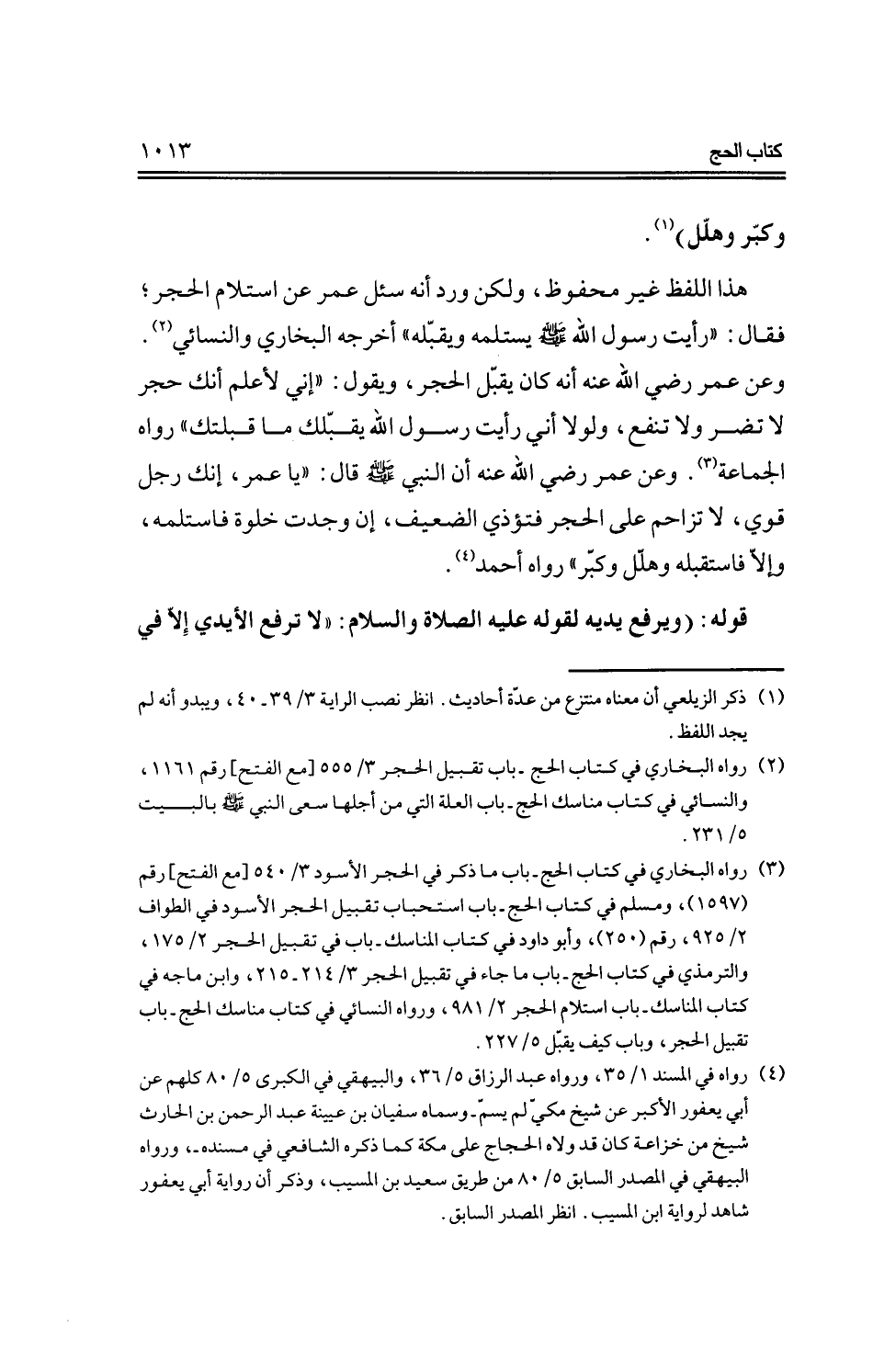 قوله: (ويرفع يديه لقوله عليه الصلاة والسلام: "لا ترفع الأيدي إلا في