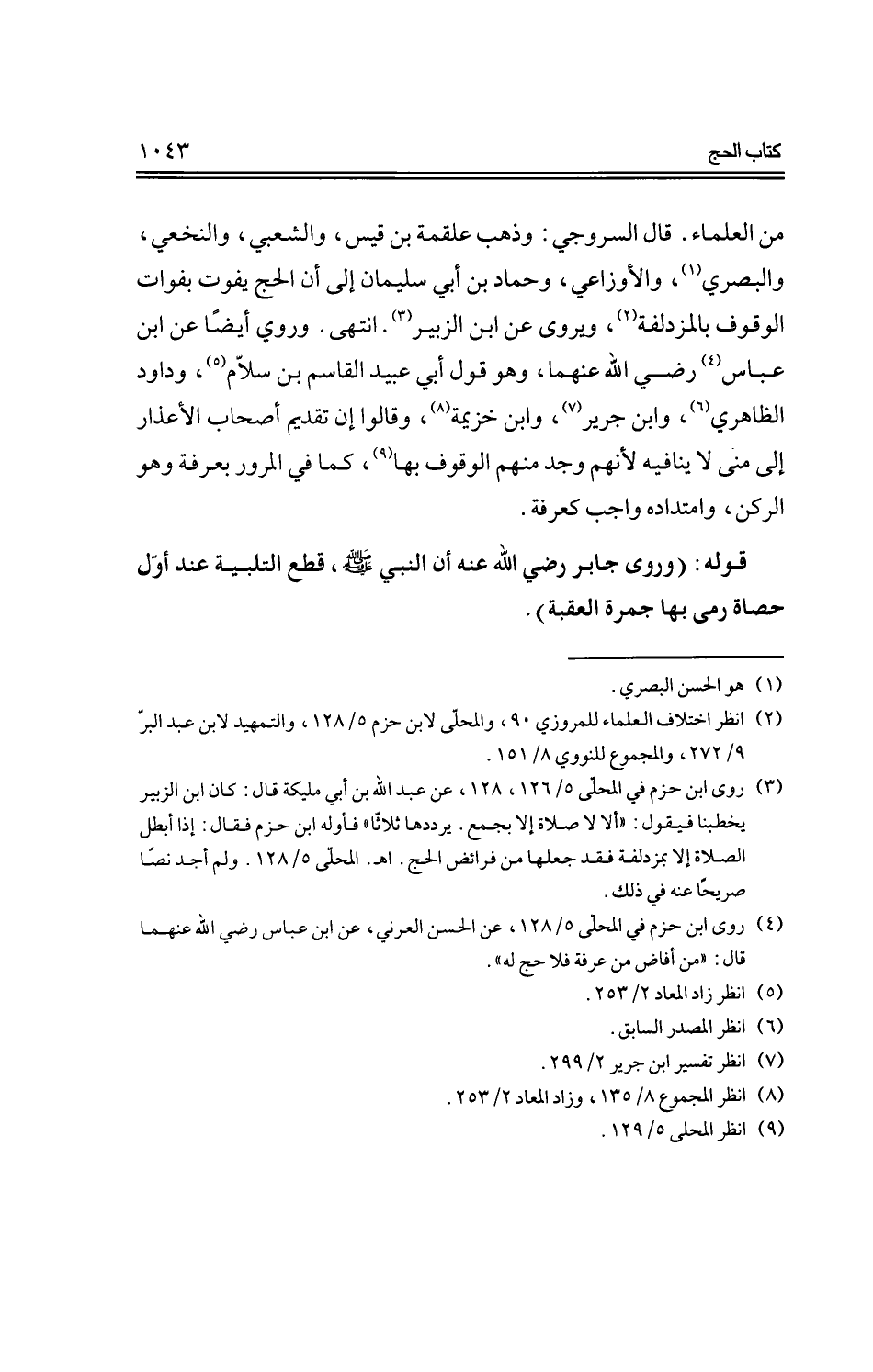 من العلماء. قال السروجي: وذهب علقمة بن قيس، والشعبي، والنخعي، والبصري، والأوزاعي، وحماد بن أبي سليمان إلى أن الحج يفوت بفوات الوقوف بالمزدلفة، ويروى عن ابن الزبير. انتهى. وروي أيضًا عن ابن عباس رضي الله عنهما، وهو قول أبي عبيد القاسم بن سلام، وداود الظاهري، وابن جرير، وابن خزيمة، وقالوا إن تقديم أصحاب الأعذار إلى منى لا ينافيه لأنهم وجد منهم الوقوف بها، كما في المرور بعرفة وهو الركن، وامتداده واجب كعرفة.