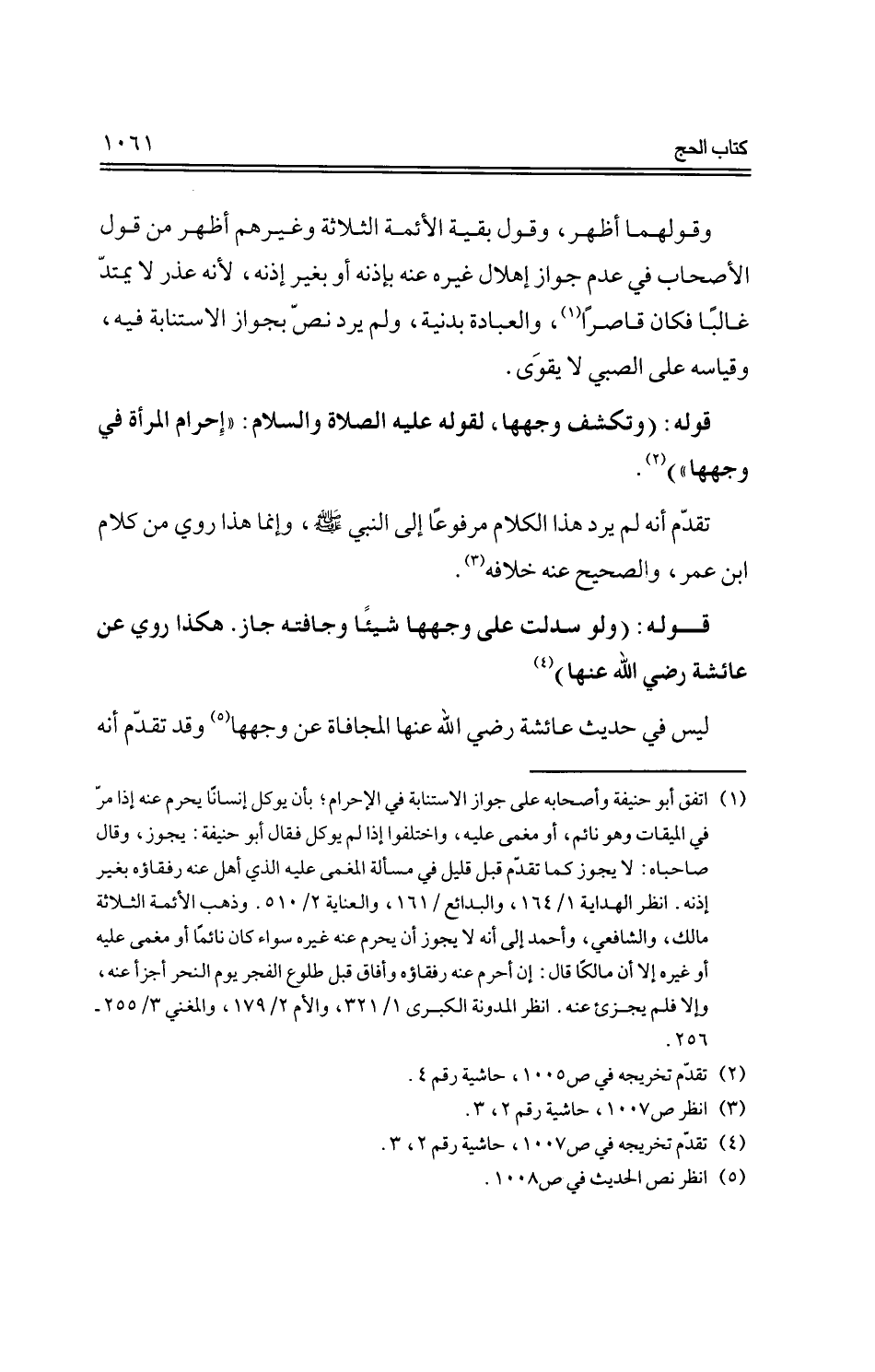قوله: (وتكشف وجهها، لقوله عليه الصلاة والسلام: "إحرام المرأة في وجهها").