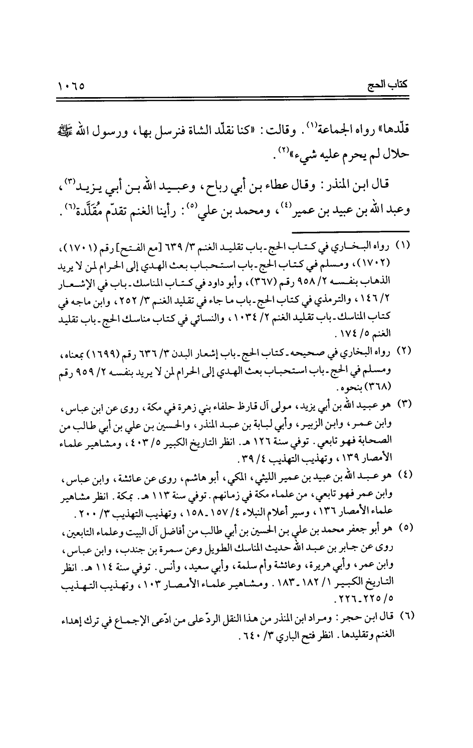 قال ابن المنذر: وقال عطاء بن أبي رباح، وعبيد الله بن أبي يزيد، وعبد الله بن عبيد بن عمير، ومحمد بن علي: رأينا الغنم تقدم مقلدة.