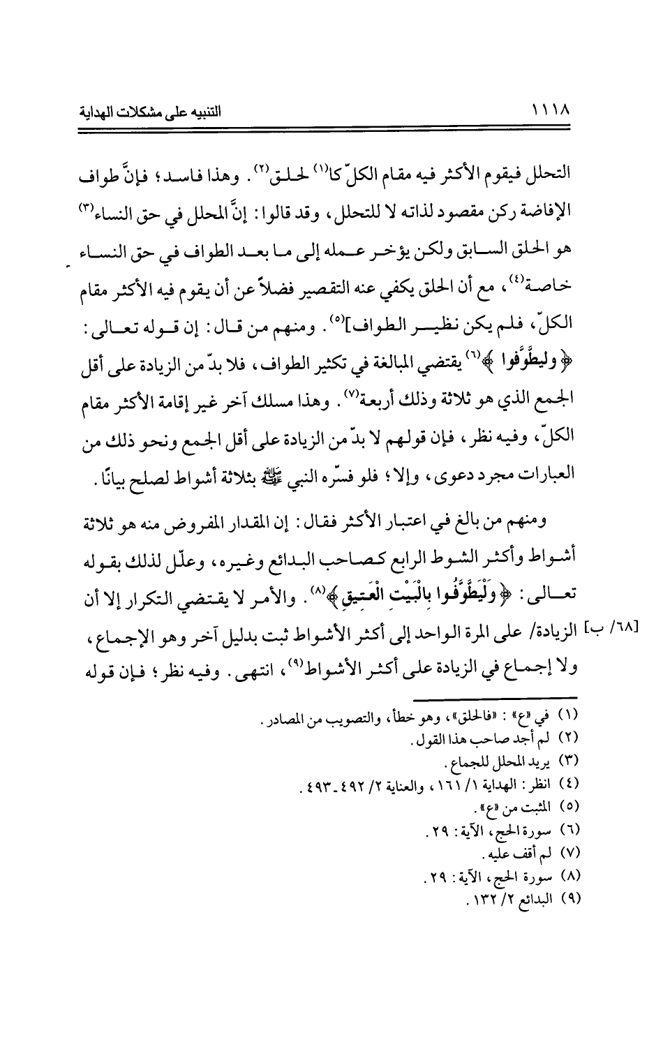 ومنهم من بالغ في اعتبار الأكثر فقال: إن المقدار المفروض منه هو ثلاثة أشواط وأكثر الشوط الرابع كصاحب البدائع وغيره، وعلل لذلك بقوله تعالى: {وليطوافوا بالبيت العتيق}. والأمر لا يقتضي التكرار إلا أن الزيادة على المرة الواحدة إلى أكثر الأشواط ثبت بدليلٍ آخر وهو الإجماع، ولا إجماع في الزيادة على أكثر الأشواط، انتهى. وفيه نظر؛ فإن قوله