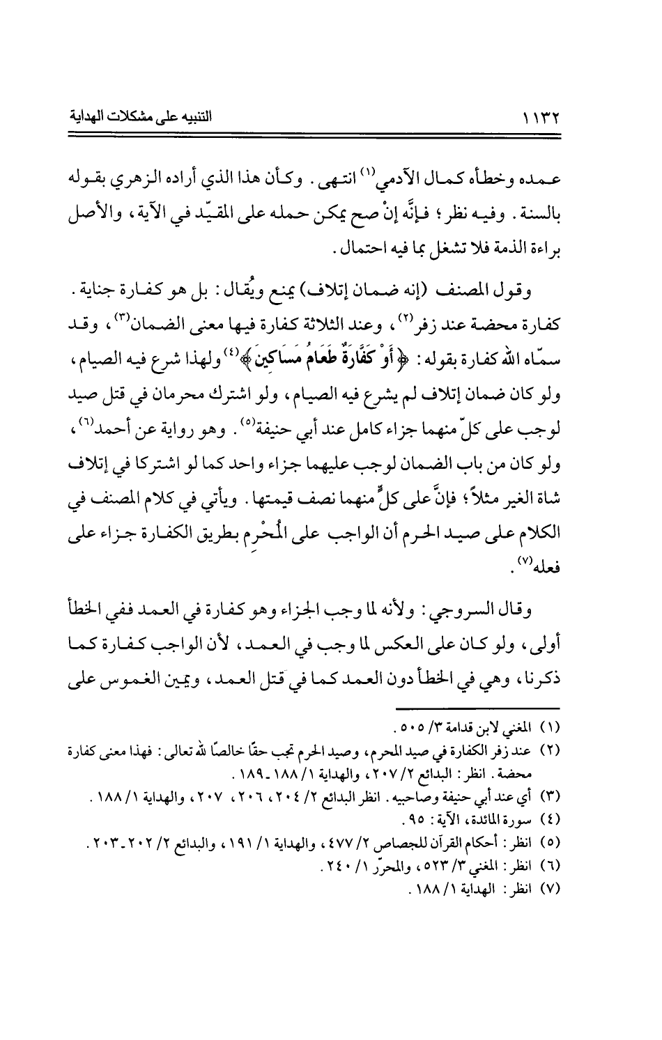 وقول المصنف (إنه ضمان إتلاف) يمنع ويقال: بل هو كفارة جناية. كفارة محضة عند زفر، وعند الثلاثة كفارة فيها معنى الضمان، وقد سماه الله كفارة بقوله: {أو كفارة طعام مساكين} ولهذا شرع فيه الصيام، ولو كان ضمان إتلاف لم يشرع فيه الصيام، ولو اشترك محرمان في قتل صيد لوجب على كلٍ منهما جزاء كامل عند أبي حنيفة. وهو رواية عن أحمد، ولو كان من باب الضمان لوجب عليهما جزاء واحد كما لو اشتركا في إتلاف شاة الغير مثلًا؛ فإن على كل منهما نصف قيمتها. ويأتي في كلام المصنف في الكلام على صيد الحرم أو الواجب على المحرم بطريق الكفارة جزاء على فعله.