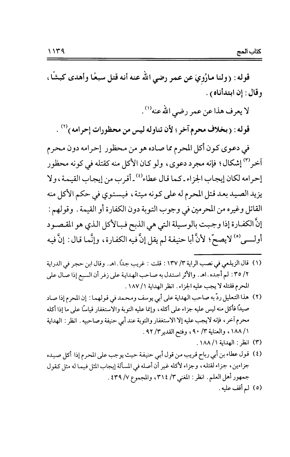 في دعوى كون أكل المحرم ما صاده هو من محظور إحرامه دون محرم آخر إشكال؛ فإنه مجرد دعوى، ولو كان الأكل منه كقتله في كونه محظور إحرامه لكان إيجاب الجزاء- كما قال عطاء- أقرب من إيجاب القيمة، ولا يزيد الصيد بعد قتل المحرم له على كونه ميتة، فيستوي في حكم الأكل منه القاتل وغيره من المحرمين في وجوب التوبة دون الكفارة أو القيمة. وقولهم: إن الكفارة إذا وجبت بالوسيلة التي هي الذبح فبالأكل الذي هو المقصود أولى لا يصح، لأن أبا حنيفة لم يقل إن فيه الكفارة، وإنما قال: إن فيه