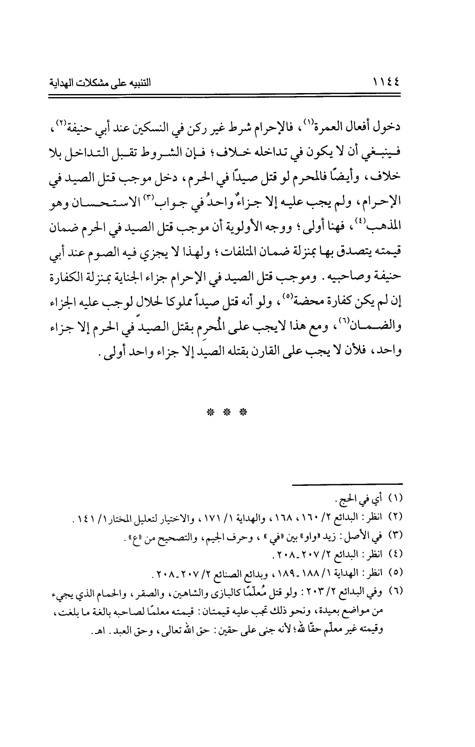 دخول أفعال العمرة، فالإحرام شرط غير ركن في النسكين عند أبي حنيفة، فينبغي أن لا يكون في تداخله خلاف؛ فإن الشروط تقبل التداخل بلا خلاف، وأيضًا فالمحرم لو قتل صيدًا في الحرم، دخل موجب قتل الصيد في الإحرام، ولم يجب عليه إلا جزاء واحد في جواب الاستحسان وهو المذهب، فهنا أولى؛ ووجه الأولوية أن موجب قتل الصيد في الحرم ضمان قيمته يتصدق بها بمنزلة ضمان المتلفات؛ ولهذا لا يجزي فيه الصوم عند أبي حنيفة وصاحبيه. وموجب قتل الصيد في الإحرام جزاء الجناية بمنزلة الكفارة إن لم يكن كفارة محضة، ولو أنه قتل صيدًا مملوكًا لحلالٍ لوجب عليه الجزاء والضمان، ومع هذا لا يجب على المحرم بقتل الصيد في الحرم إلا جزاء واحد، فلأن لا يجب على القارن بقتله الصيد إلا جزاء واحد أولى.