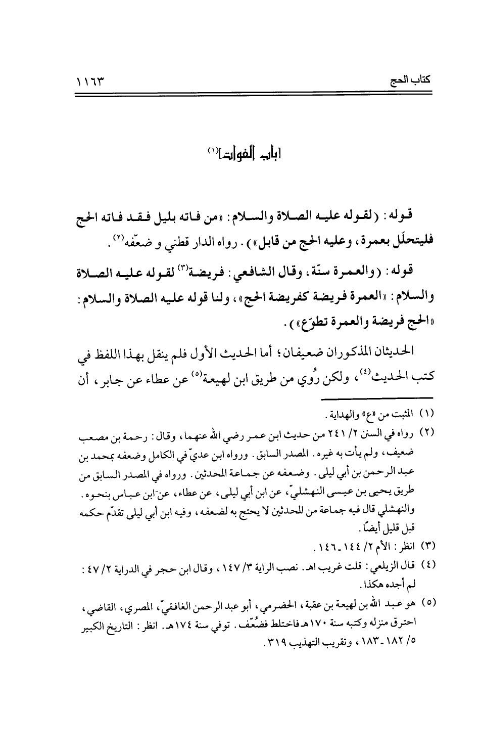 قوله: (لقوله -عليه الصلاة والسلام-: ((من فاته بليل فقد فاته الحج فليتحلل بعمرة، وعليه الحج من قابل))). رواه الدارقطني وضعفه.