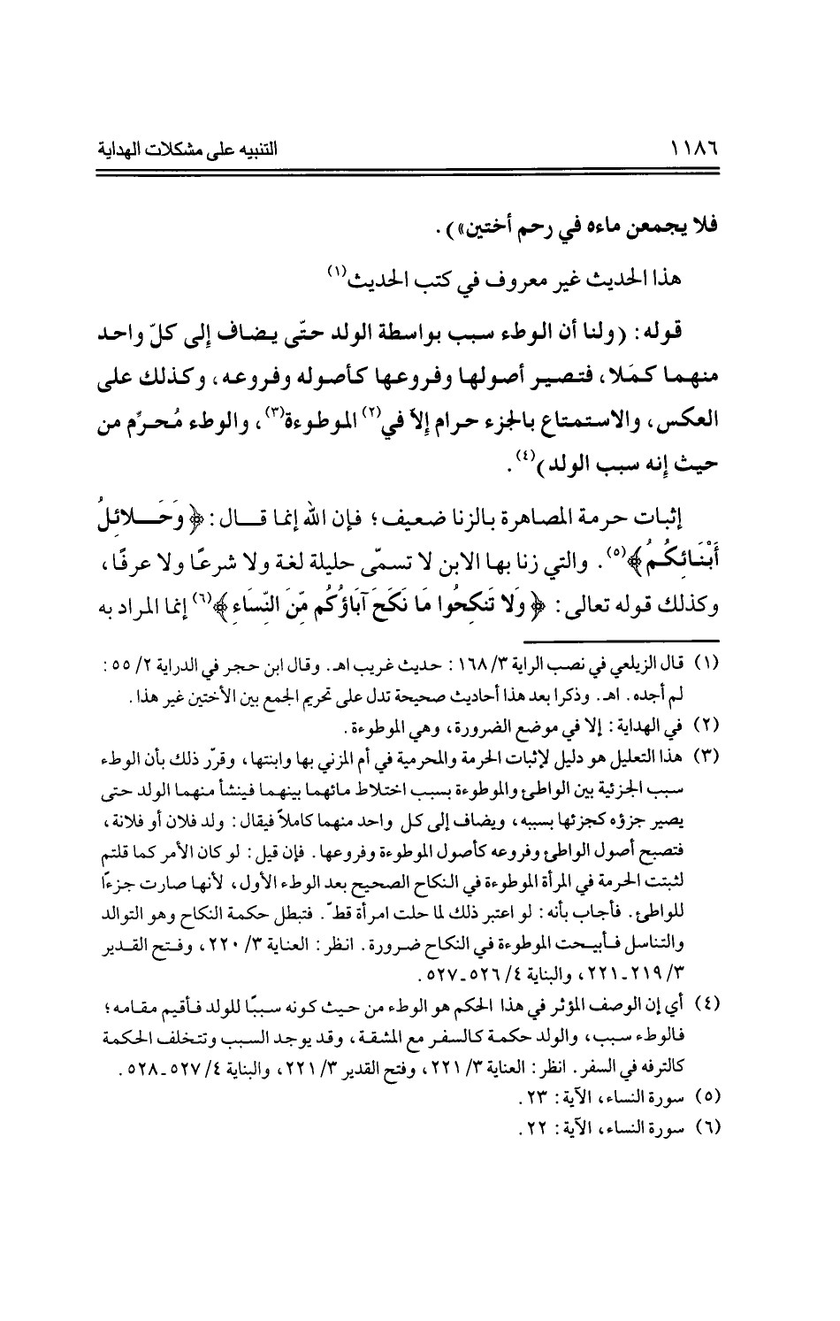 إثبات حرمة المصاهرة بالزنا ضعيف؛ فإن الله إنما قال: {وحلائل أبنائكم}. والتي زنا بها الابن لا تسمى حليلة لغة ولا شرعًا ولا عرفًا، وكذلك -قوله تعالى-: {ولا تنكحوا ما نكح آباؤكم من النساء} إنما المراد به