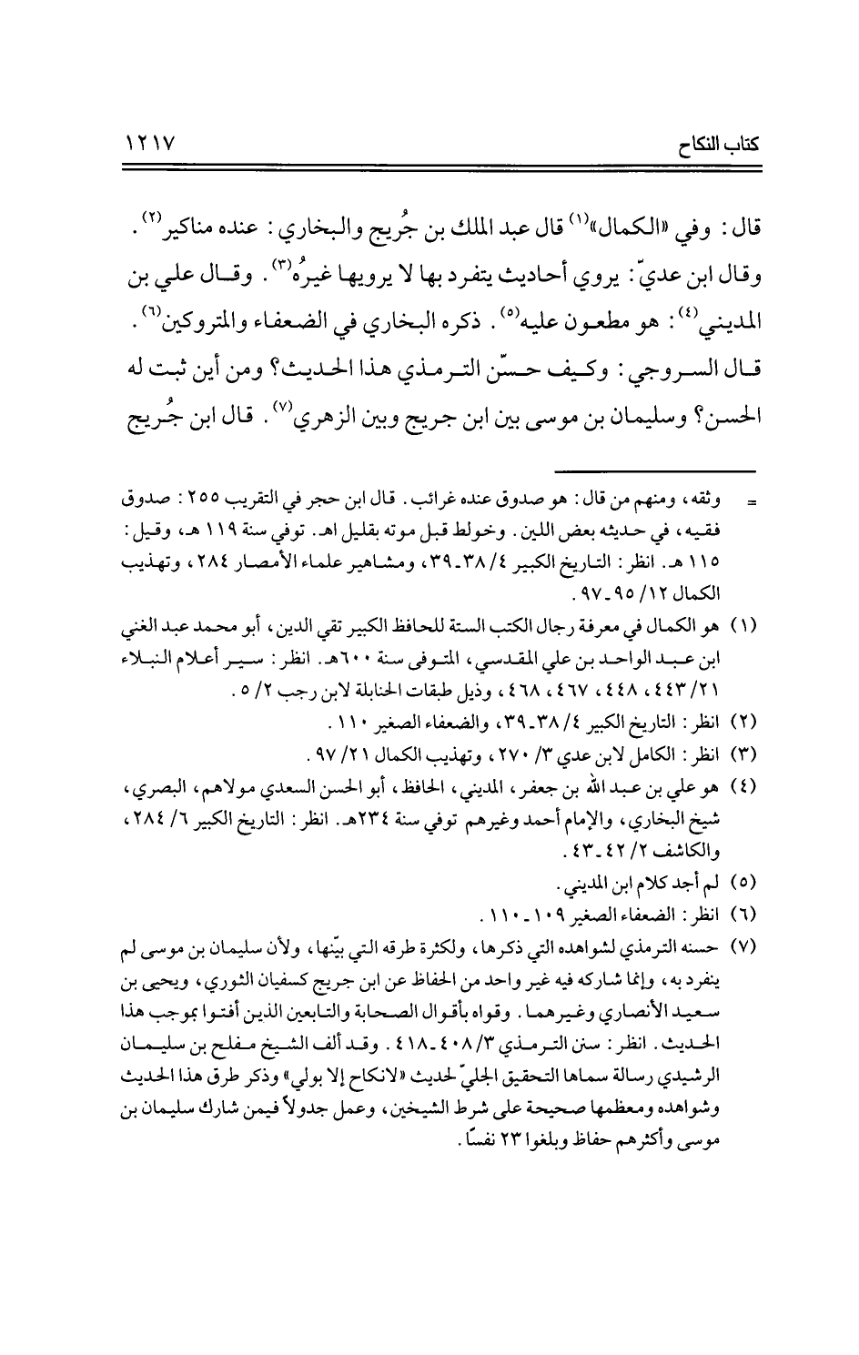 قال: وفي الكمال قال عبد الملك بن جريج والبخاري: عنده مناكير وقال ابن عدي: يروي أحاديث يتفرد بها لا يرويها غيرة. وقال علي بن المديني: هو مطعون عليه. كره البخاري في الضعفاء والمتروكين.