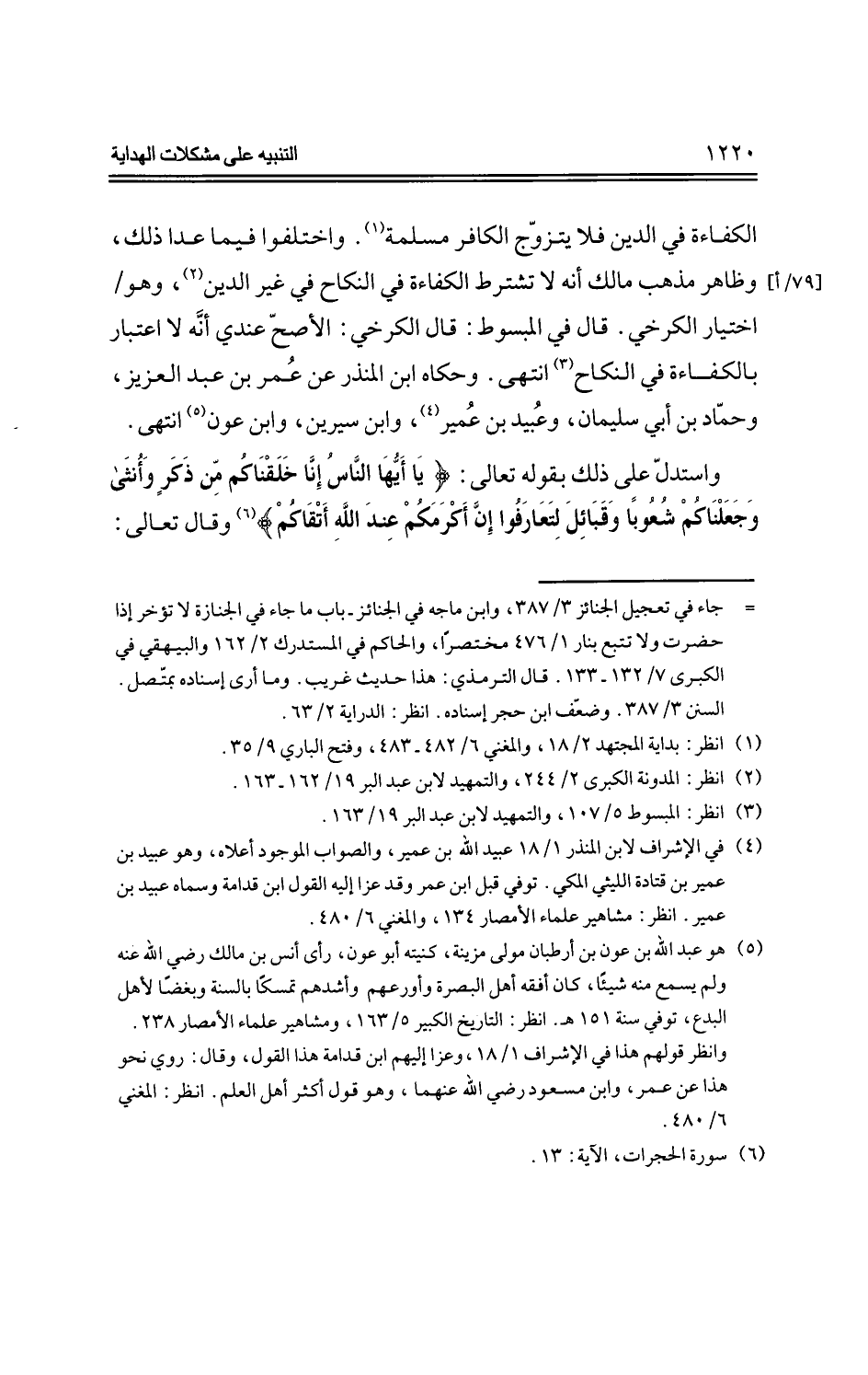 واستدل على ذلك بقوله تعالى: {يا أيها الناس إنا خلقناكم من ذكر وأنثى وجعلناكم شعوبا وقبائل لتعارفوا إن أكرمكم عند الله أتقاكم} وقال تعالى: