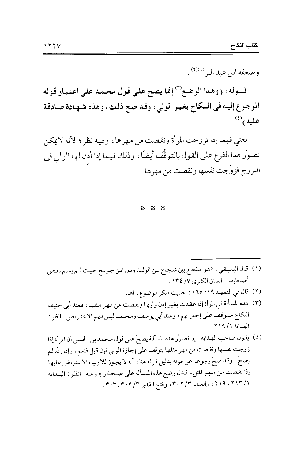 يعني فيما إذا تزوجت المرأة ونقصت من مهرها، وفيه نظر؛ لأنه لا يمكن تصور هذا الفرع على القول بالتوقف أيضًا، وذلك فيما إذا أذن لها الولي في التزوج فزوجت نفسها ونقصت من مهرها.