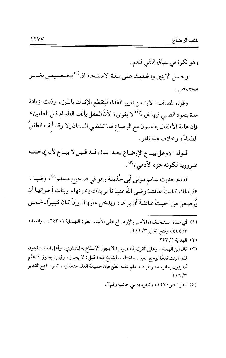 وقول المصنف: لا بد من تغيير الغذاء لينقطع الإنبات باللبن، وذلك بزيادة مدة يتعود الصبي فيها غيره لا يقوي؛ لأن الطفل يألف الطعام قبل العامين؛ فإن عامه الأطفال يطعمون مع الرضاع فما تنقضي السنتان إلا وقد ألف الطفل الطعام، وخلاف هذا نادر.