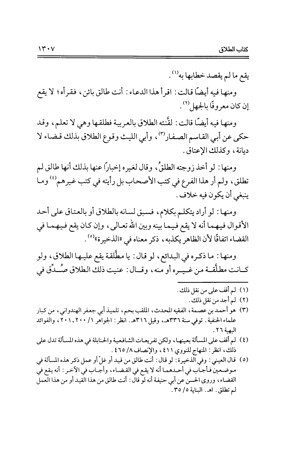 ومنها: لو أراد يتكلم بكلام، فسبق لسانه بالطلاق أو بالعتاق على أحد الأقوال فيهما أنه لا يقع فيما بينه وبين الله تعالي، وإن كان يقع فيهما في القضاء اتفاقًا لأن الظاهر يكذبه، ذكر معناه في "الذخيرة".