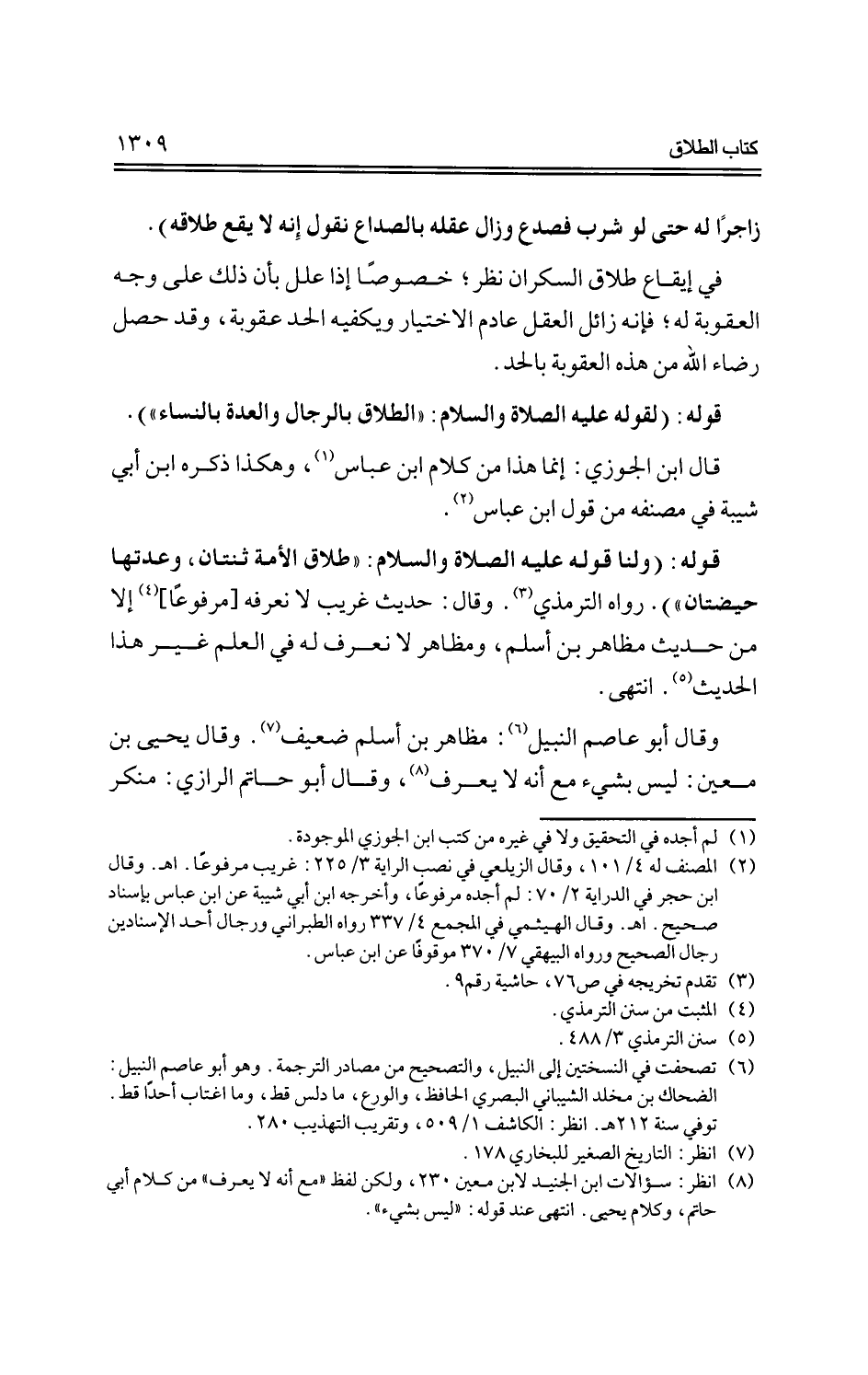 قوله: (ولنا قوله عليه الصلاة والسلام: "طلاق الأمة ثنتان، وعدتها حيضتان") رواه الترمذي، وقال: حديث غريب لا نعرفه [مرفوعًا] إلا من حديث مظاهر بن أسلم، ومظاهر لا نعرف له في العلم غير هذا الحديث، انتهي.