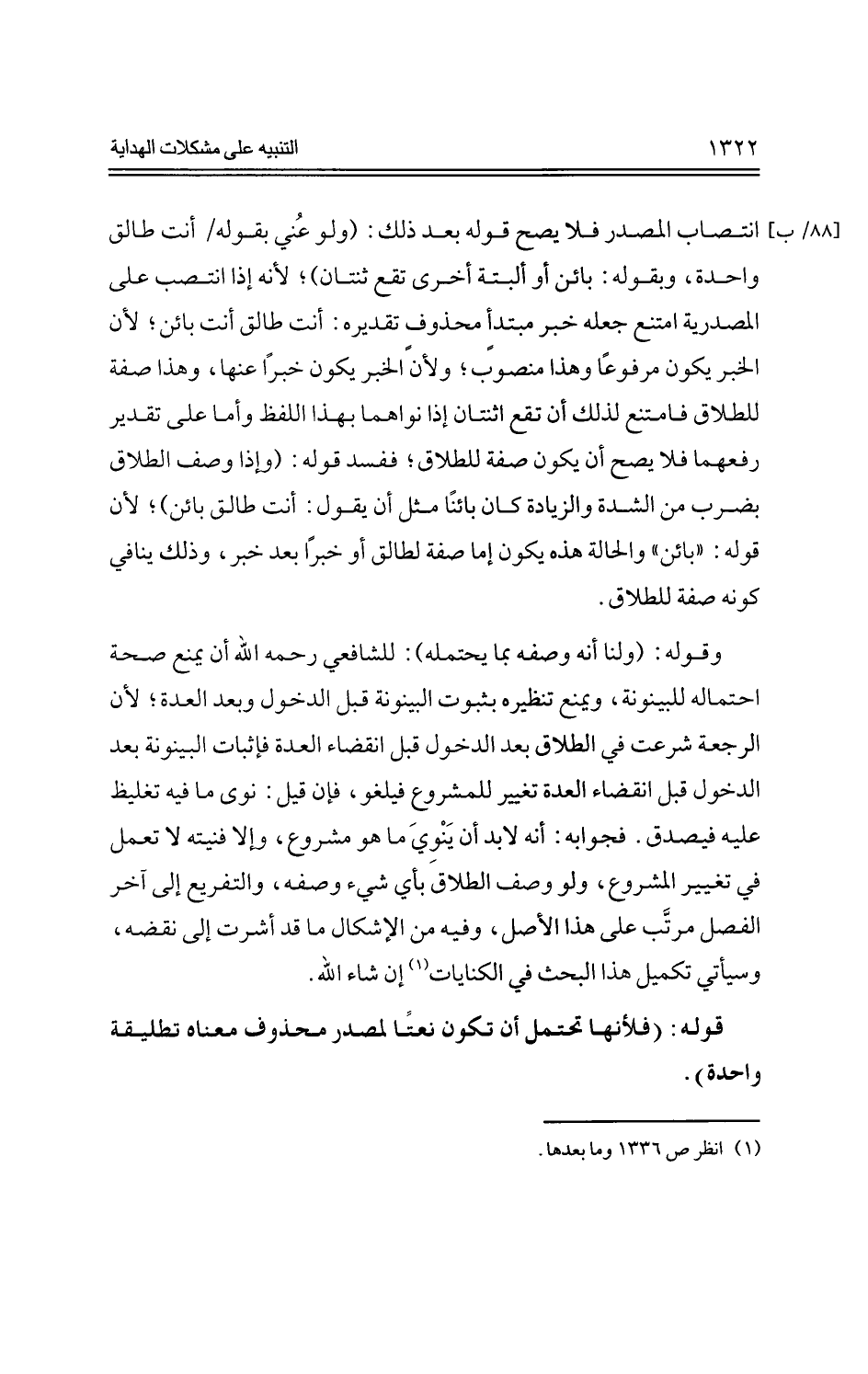 قوله: (فلأنها تحتمل أن تكون نعتًا لمصدر محذوف معناه تطليقة واحدة).