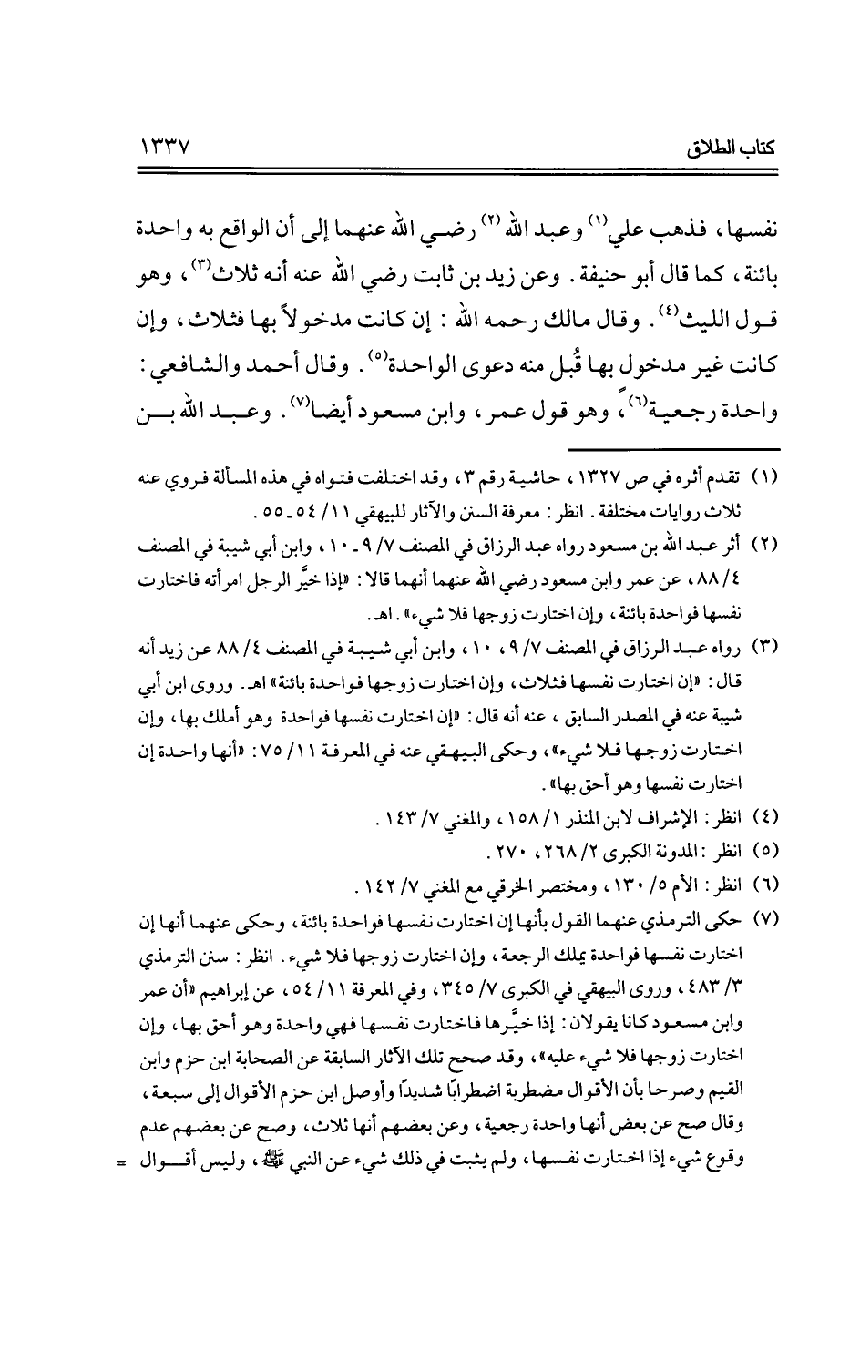 نفسها، فذهب علي وعبد الله رضي الله عنهما إلى أن الواقع به واحدة بائنة، كما قال أبو حنيفة، وعن زيد بن ثبات رضي الله عنه أنه ثلاث، وهو قول الليث، وقال مالك رحمه الله: إن كانت مدخولاً بها فثلاث، وإن كانت غير مدخول بها قبل منه دعوي الواحدة، وقال أحمد والشافعي: واحدة رجعية، وهو قول عمر، وابن مسعود أيضًا، وعبد الله بن