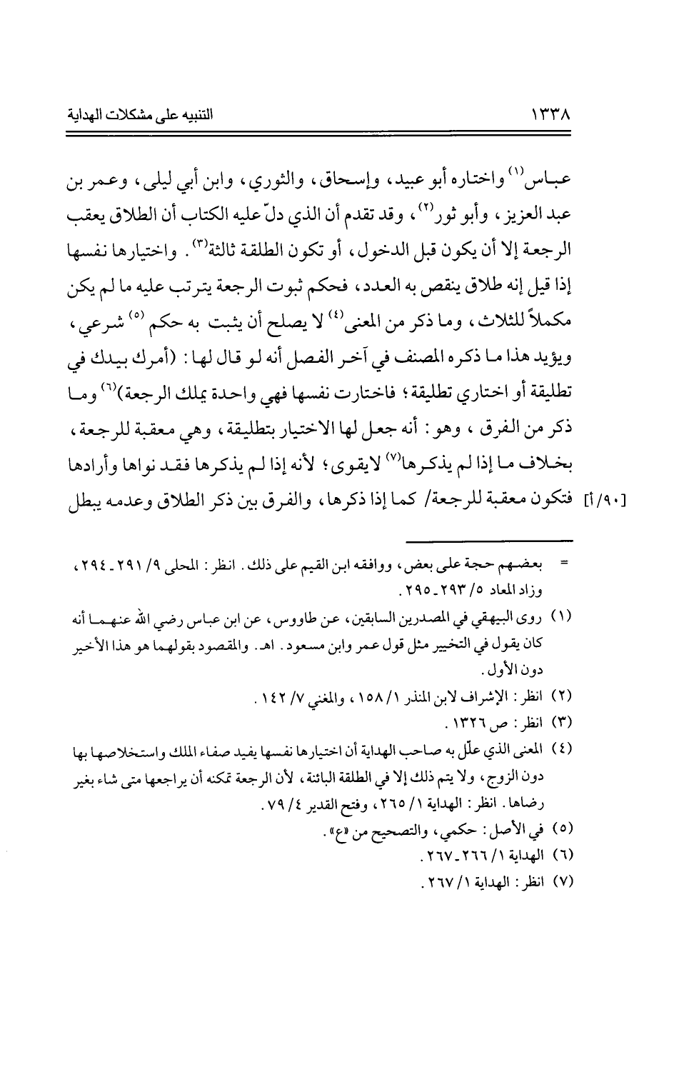 عباس واختاره أبو عبيد، وإسحاق، والثوري، وابن أبي ليلي، وعمر بن عبد العزيز، وأبو ثور، وقد تقدم أن الذل دل عليه الكتاب أن الطلاق يعقب الرجعة إلا أن يكون قبل الدخول، أو تكن الطلقة ثالثة، واختيارها نفسها إذا قيل إنه طلاق ينقص به العدد، فحكم ثبوت الرجعة يترتب عليه ما لم يكن مكملاً للثلاث، وما ذكر من المعني لا يصلح أن يثبت به حكم شرعي، ويؤيد هذا ما ذكره المصنف في آخر الفصل أنه لو قال لها: (أمرك بيدك في تطليقه أو اختاري تطليقه؛ فاختارت نفسها فهي واحدة يملك الرجعة) وما ذكر من الفرق، وهو: أنه جعل لها الاختيار بتطليقه، وهو معقبة للرجعة، بخلاف ما إذا لم يذكرها لا يقوي؛ لأنه إذا لم يذكرها فقد نواها وأرادها فتكون معقبة للرجعة/ كما إذا ذكرها، والفرق بين ذكر الطلاق وعدمه يبطل