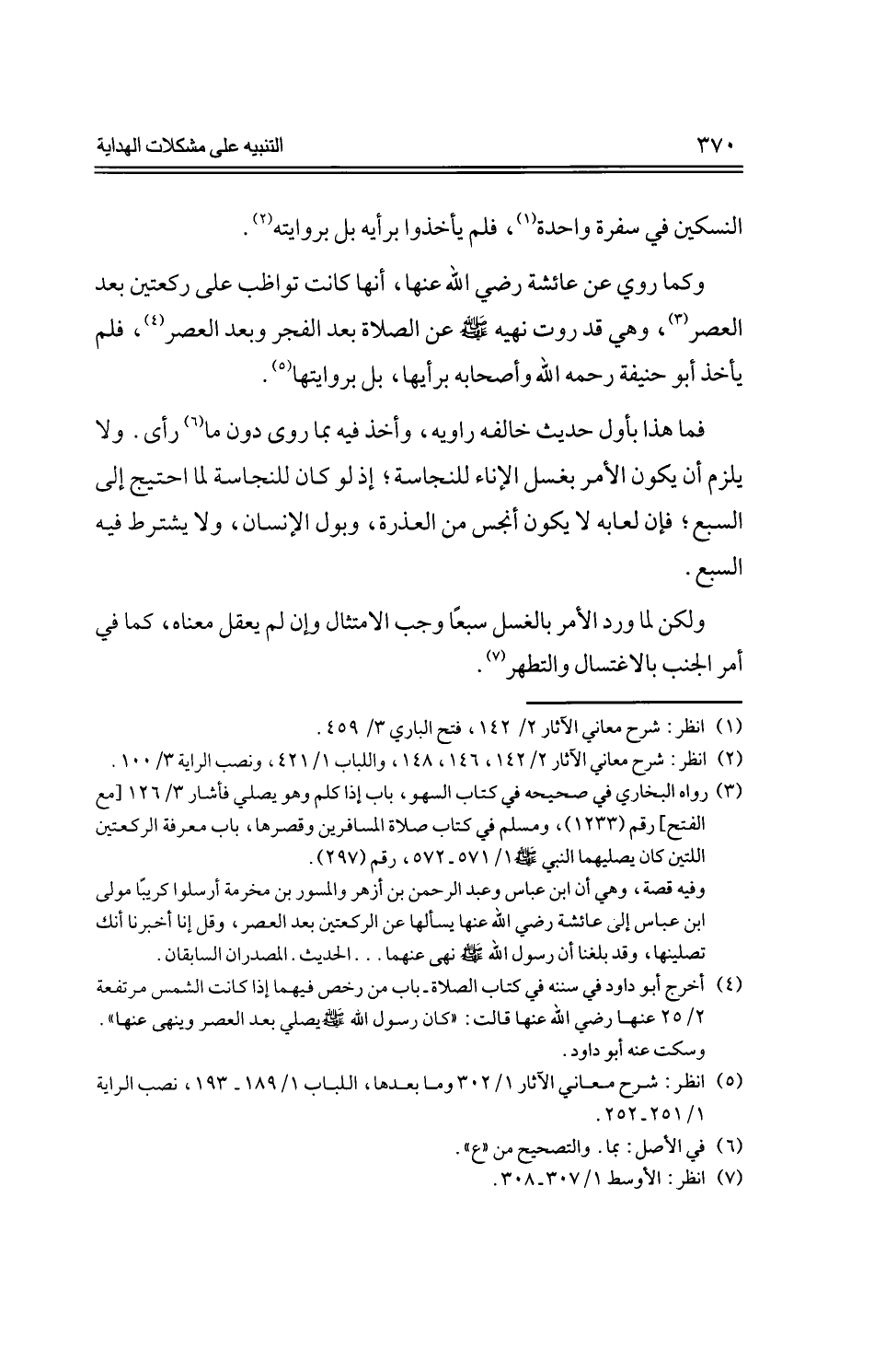وكما روي عن عائشة -رضي الله عنها-، أنها كانت تواظب على ركعتين بعد العصر، وهي قد روت نهيه -صلى الله عليه وسلم- عن الصلاة بعد الفجر وبعد العصر، فلم يأخذ أبو حنيفة رحمه الله وأصحابه برأيها، بل بروايتها.