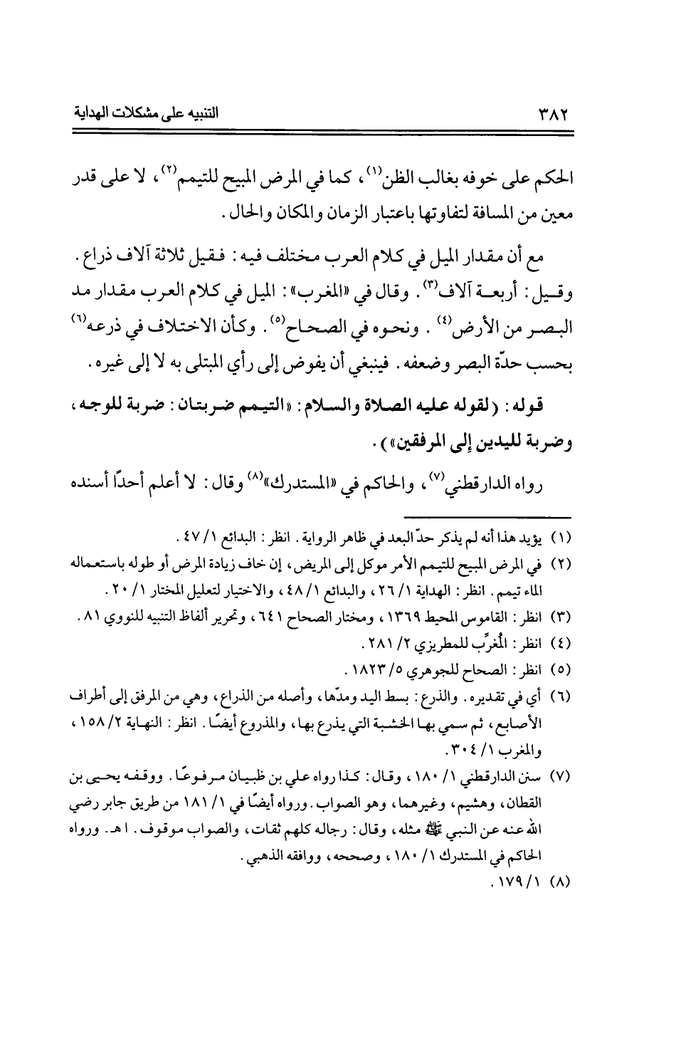 مع أن مقدار الميل في كلام العرب مختلف فيه: فقيل ثلاثة آلاف ذراع. وقيل: أربعة آلاف. وقال في "المغرب": الميل في كلام العرب مقدار مد البصر من الأرض. ونحوه في الصحاح. وكأن الاختلاف في ذرعه بحسب حدة البصر وضعفه. فينبغي أن يفوض إلى رأي المبتلى به لا إلى غيره.