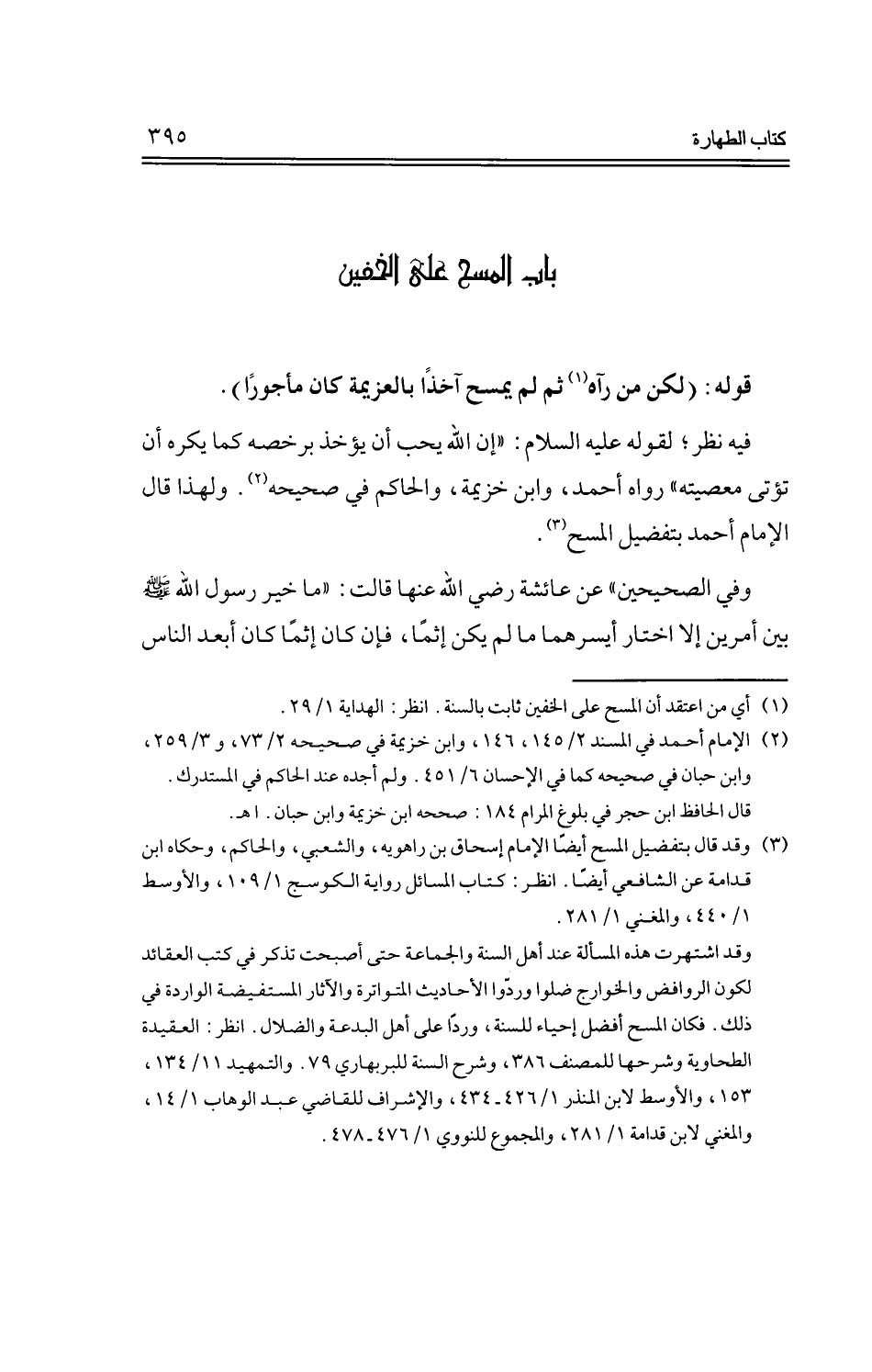 قوله: لكن من رآه ثم لم يمسح آخذًا بالعزيمة كان مأجورًا).
