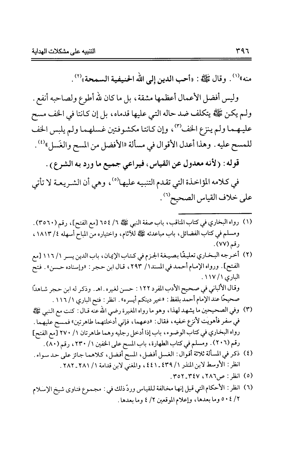 وليس أفضل الأعمال أعظمها مشقة، بل ما كان لله أطوع ولصاحبه أنفع. ولم يكن -صلى الله عليه وسلم- يتكلف ضد حاله التي عليها قدماه، بل إن كانتا في الخف مسح عليهما ولم ينزع الخف، وإن كانتا مكشوفتين غسلهما ولم يلبس الخف للمسح عليه. وهذا أعدل الأقوال في مسألة "الأفضل من المسح والغسل".