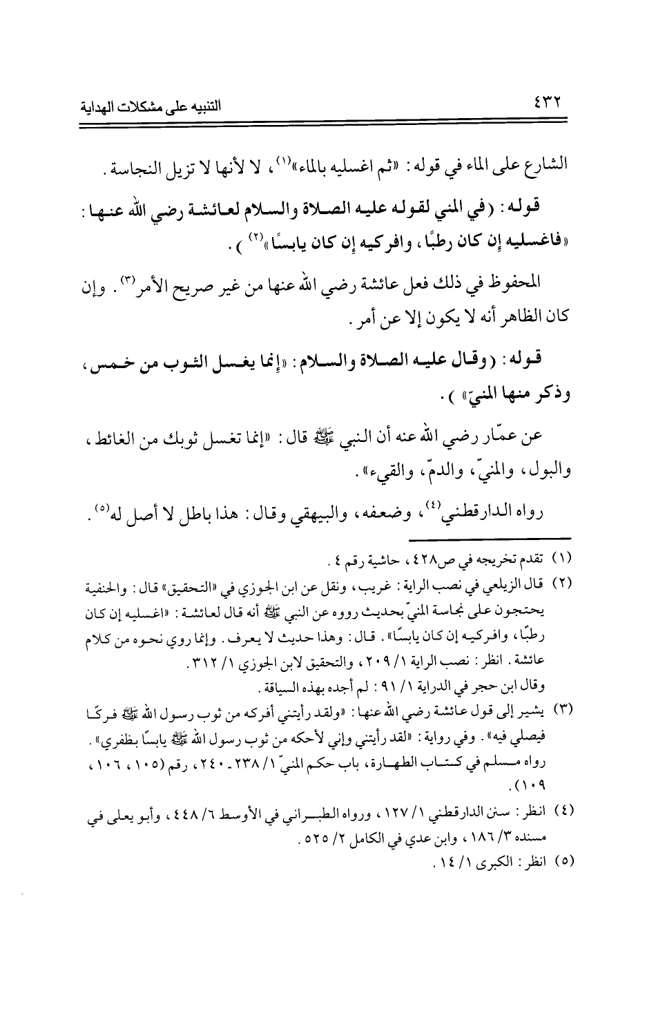 قوله: (وقال عليه الصلاة والسلام: "إنما يغسل الثوب من خمس، وذكر منها المني").