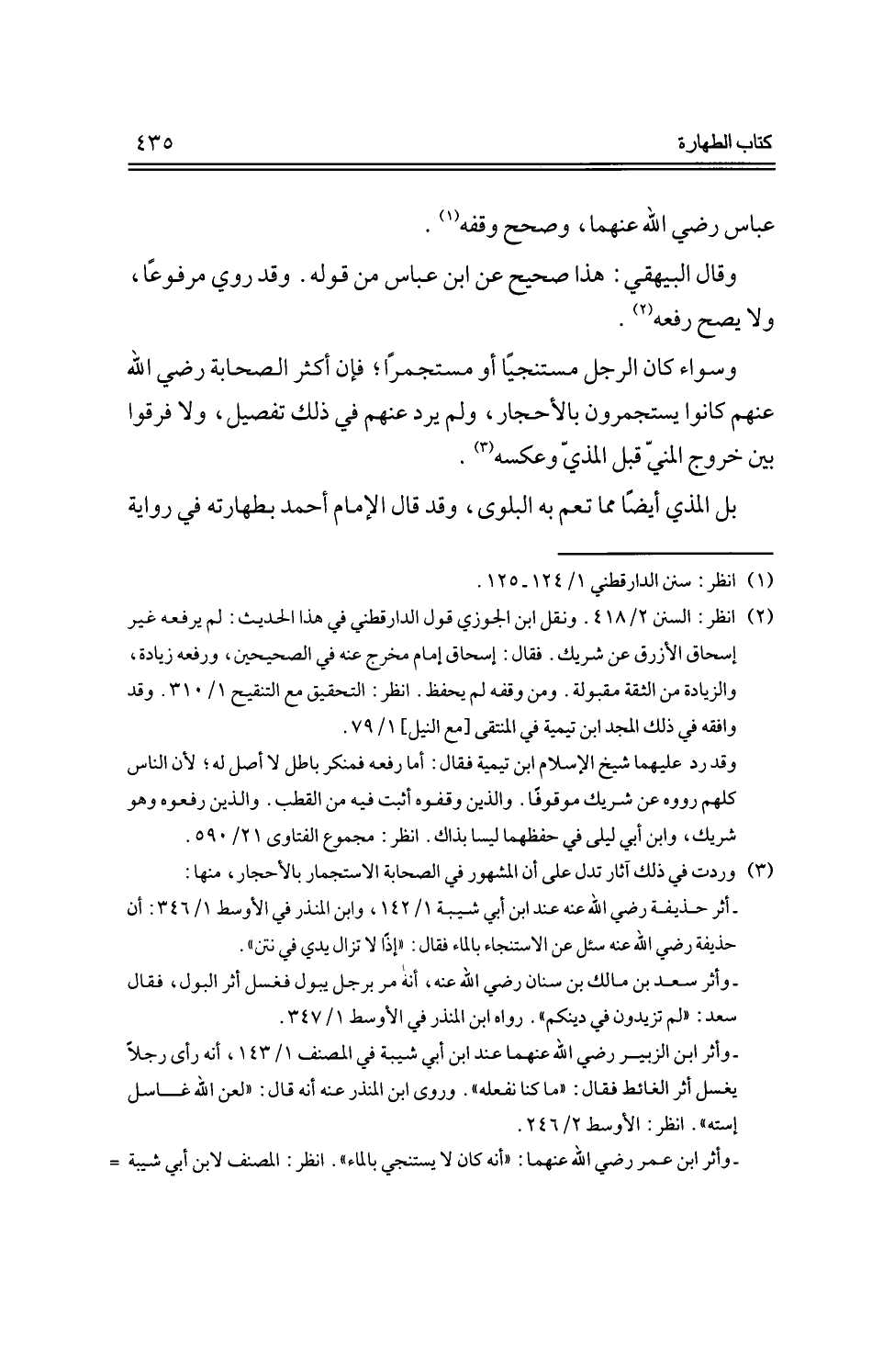 وسواء كان الرجل مستنجيًا أو مستجمرًا؛ فإن أكثر الصحابة -رضي الله عنهم- كانوا يستجمرون بالأحجار، ولم يرد عنهم في ذلك تفصيل، ولا فرقوا بين خروج المني قبل المذي وعكسه.