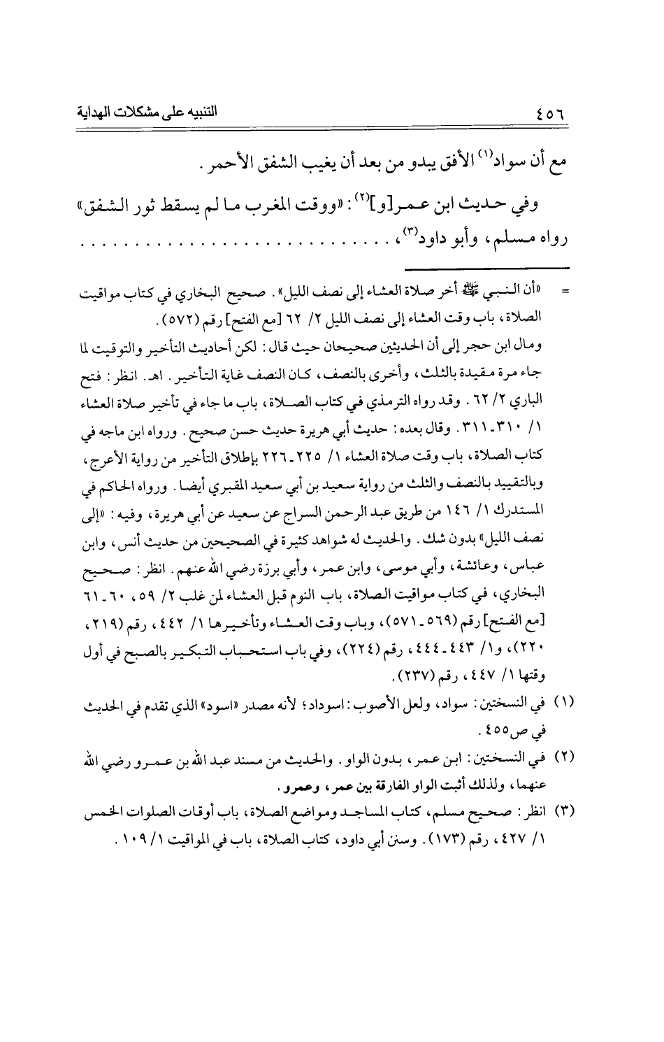 وفي حديث ابن عمر [و]: "ووقت المغرب ما لم يسقط ثور الشفق" رواه مسلم، وأبو داود، ......................