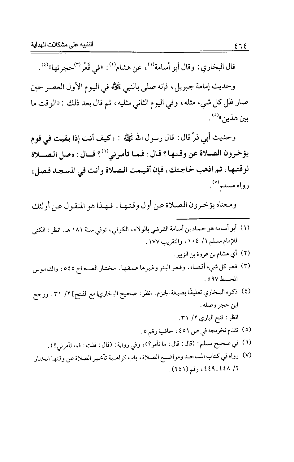 وحديث أبي ذر قال: قال رسول الله -صلى الله عليه وسلم-: "كيف أنت إذا بقيت في قوم يؤخرون الصلاة عن وقتها؟ قال: فما تأمرني؟ قال: "صل الصلاة لوقتها، ثم اذهب لحاجتك، فإن أقيمت الصلاة وأنت في المسجد فصل" رواه مسلم.