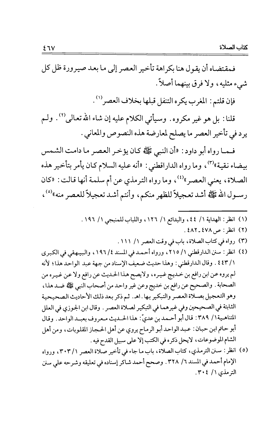 قلنا: بل هو غير مكروه. وسيأتي الكلام عليه إن شاء الله تعالى. ولم يرد في تأخير العصر ما يصلح لمعارضة هذه النصوص والمعاني.