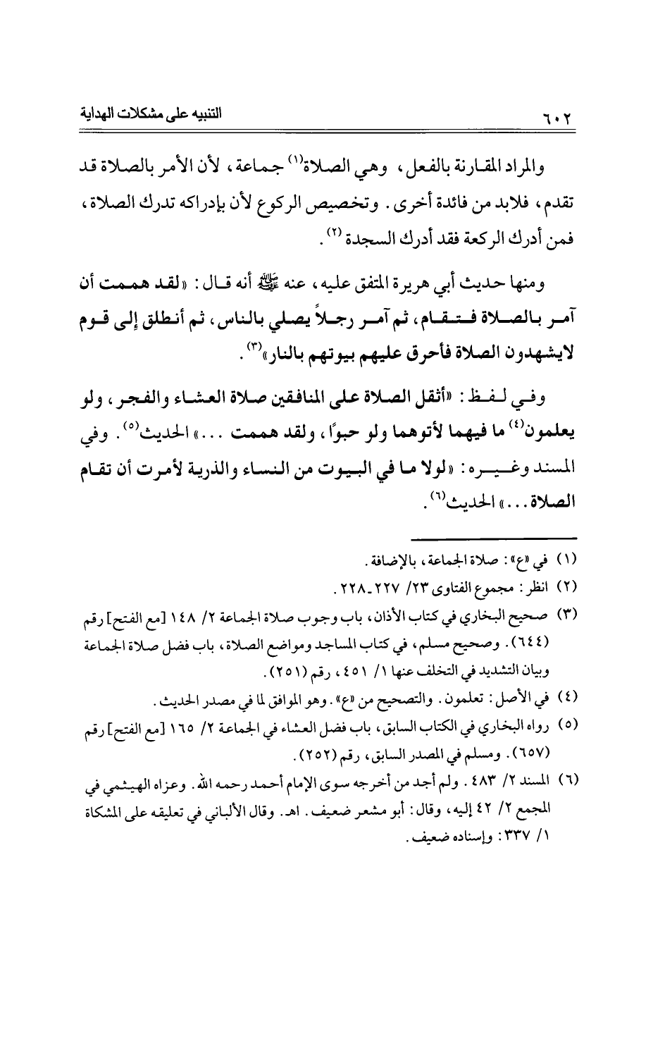 وفي لفظ: "أثقل الصلاة على المنافقين صلاة العشاء والفجر، ولو يعلمون ما فيهما لأتوهما ولو حبوًا، ولقد هممت ... " الحديث. وفي المسند وغيره: "لولا ما في البيوت من النساء والذرية لأمرت أن تقام الصلاة ... " الحديث.