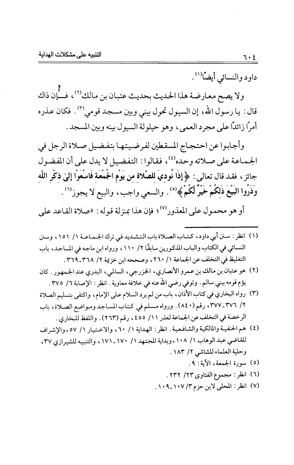 وأجابوا عن احتجاج المسقطين لفرضيتها بتفضيل صلاة الرجل في الجماعة على صلاته وحده، فقالوا: التفضيل لا يدل على أن المفضول جائز، فقد قال تعالى: {إذا نودي للصلاة من يوم الجمعة فاسعوا إلى ذكر الله وذروا البيع ذلكم خير لكم}. والسعي واجب، والبيع لا يجوز.