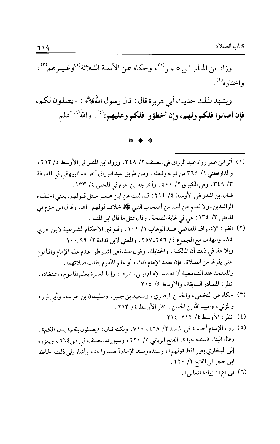 ويشهد لذلك حديث أبي هريرة قال: قال رسول الله -صلى الله عليه وسلم-: ((يصلون لكم، فإن أصابوا فلكم ولهم، وإن أخطؤوا فلكم وعليهم)). والله أعلم.