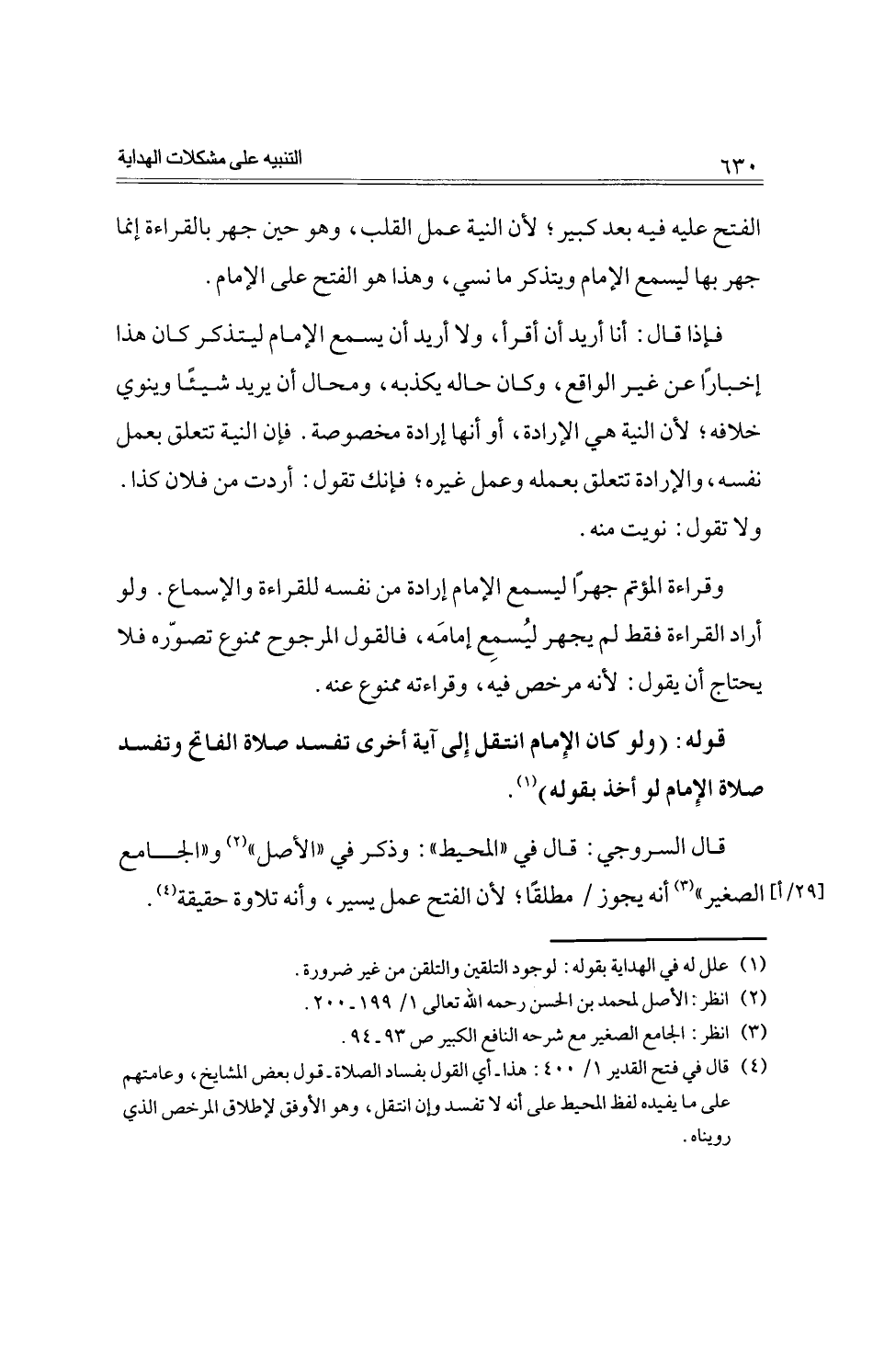 قال السروجي: قال في ((المحيط)): وذكر في ((الأصل)) و ((الجامع الصغير)) أنه يجوز مطلقًا؛ لأن الفتح عمل يسير، وأنه تلاوة حقيقة.