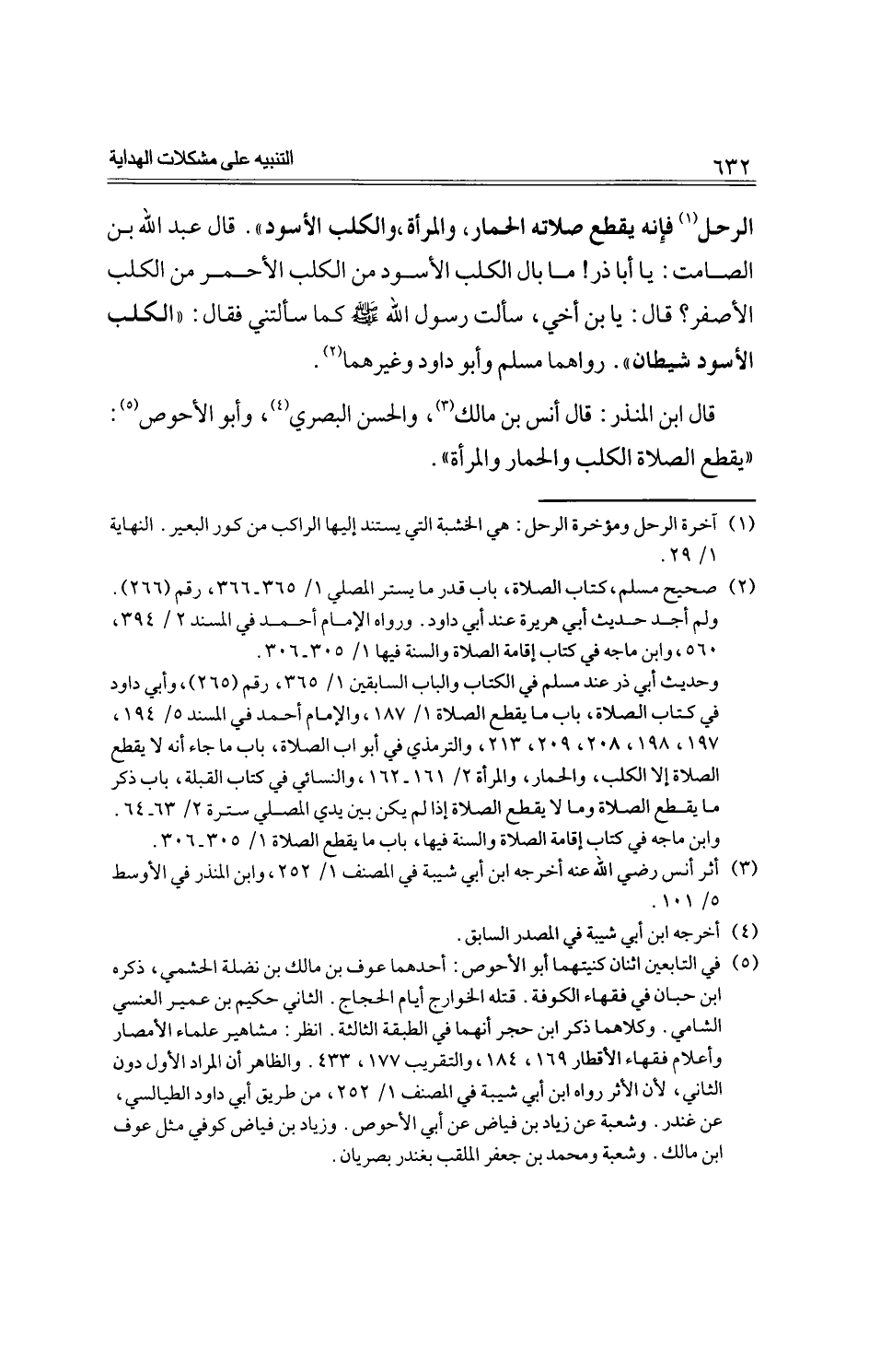 الرحل فإنه يقطع صلاته الحمار، والمرأة، والكلب الأسود)). قال عبد الله بن الصامت: يا أبا ذر! ما بال الكلب الأسود من الكلب الأحمر من الكلب الأصفر؟ قال: يا بن أخي، سألت رسول الله -صلى الله عليه وسلم-كما سألتني فقال: ((الكلب الأسود شيطان)). رواها مسلم وأبو داود وغيرهما.