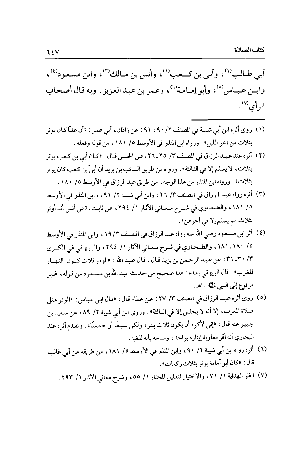 أبي طالب، وأبي بن كعب، وأنس بن مالك، وابن مسعود، وابن عباس، وأبو إمامة، وعمر بن عبد العزيز، وبه قال أصحاب الرأي.