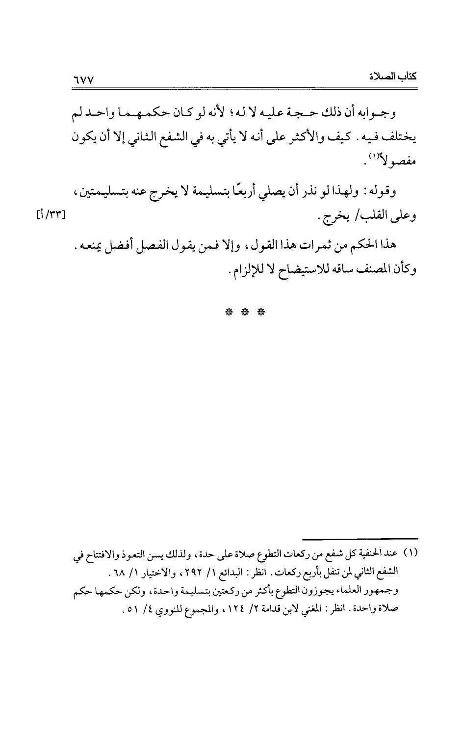 وقوله: ولهذا لو نذر أن يصلي أربعة بتسليمة لا يخرج عه بتسليمتين، وعلى القلب / يخرج.