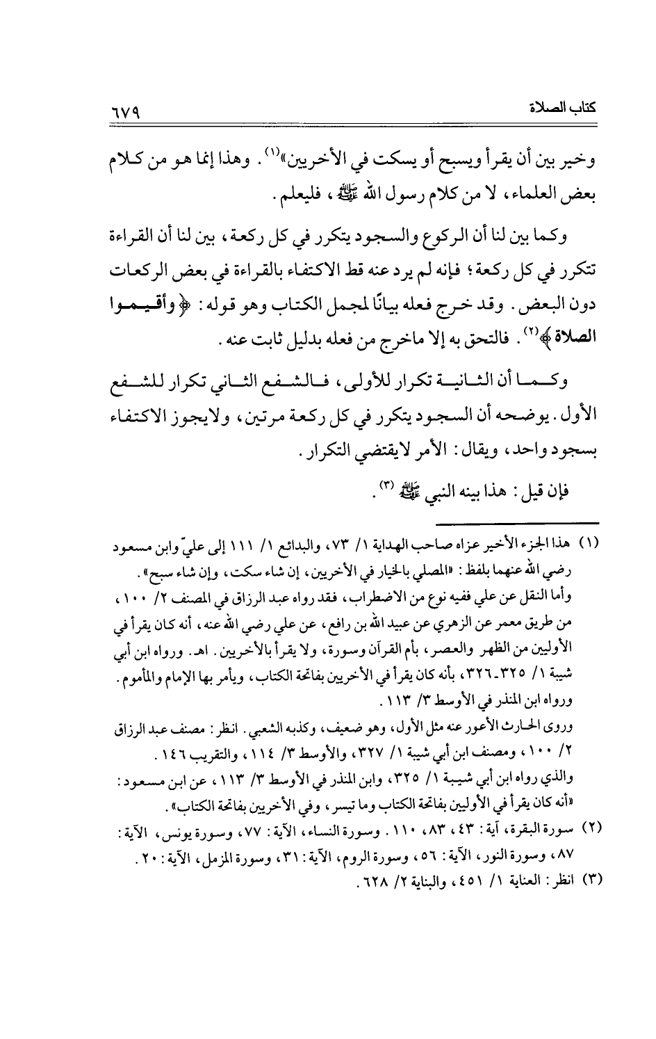 وخير بين أن يقرأ ويسبح أو يسكت في الأخريين". وهذا إنما هو من كلام بعض العلماء، لا من كلام رسول الله -صلى الله عليه وسلم-، فليعلم.
