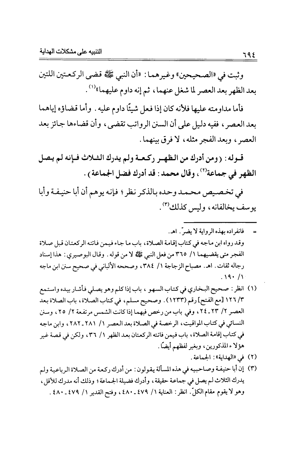وثبت في "الصحيحين" وغيرهما: "أن النبي -صلى الله عليه وسلم- قضى الركعتين اللتين بعد الظهر بعد العصر لما شغل عنهما، ثم إنه داوم عليهما".