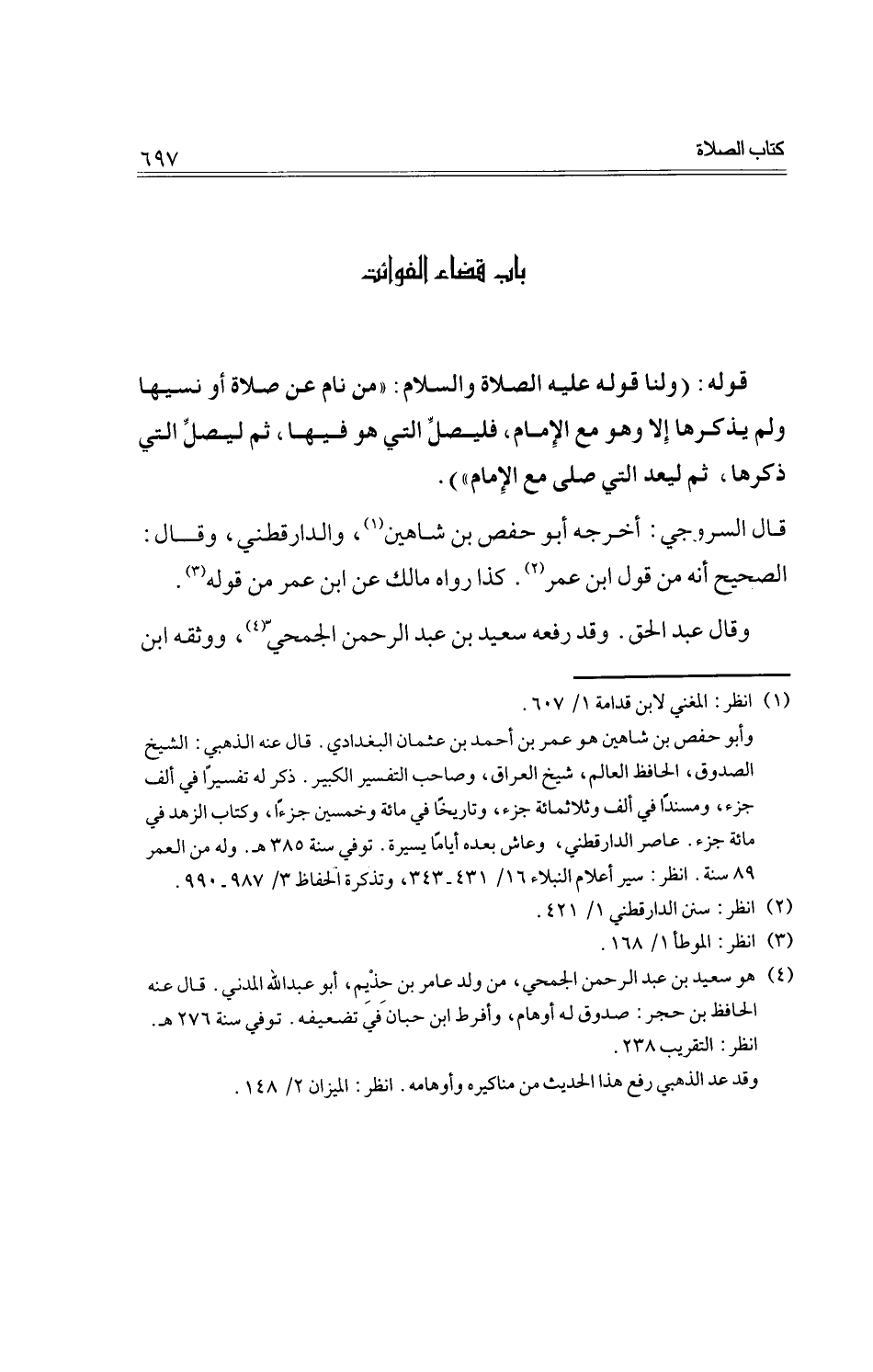 قال السروجي: أخرجه أبو حفص بن شاهين، والدارقطني، وقال: الصحيح أنه من قول ابن عمر. كذا رواه مالك عن ابن عمر من قوله.