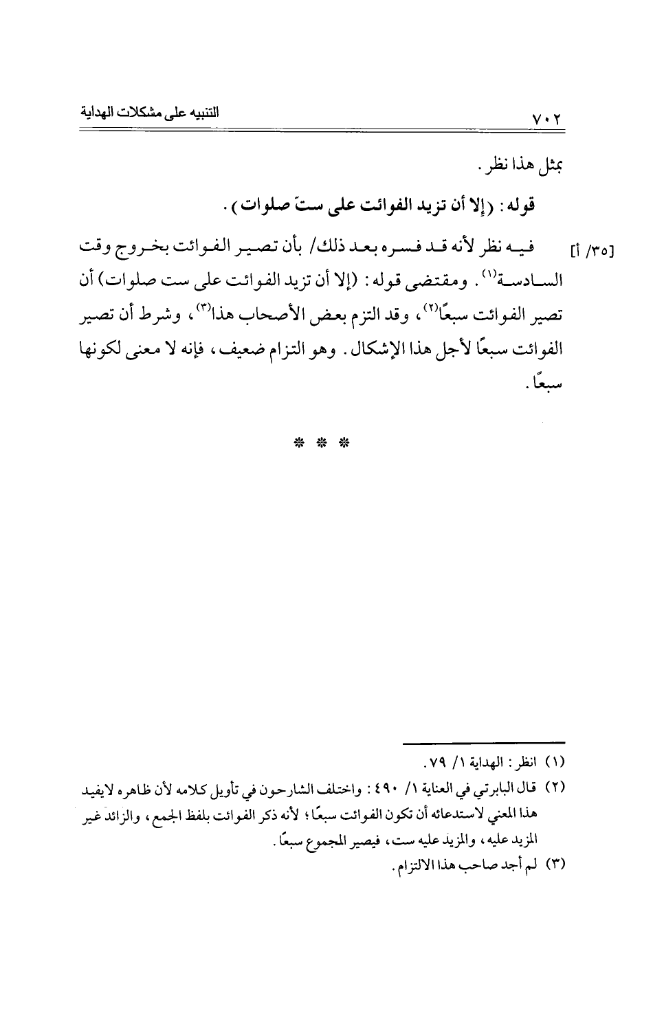 فيه نظر لأنه قد فسره بعد ذلك/ بأن تصير الفوائت بخروج وقت السادسة. ومقتضى قوله: (إلا أن تزيد الفوائت على ست صلوات) أن تصير الفوائت سبعاً، وقد التزم بعض الأصحاب هذا، وشرط أن تصير الفوائت سبعاً لأجل هذا الإشكال. وهو التزام ضعيف، فإنه لا معنى لكونها سبعاً.