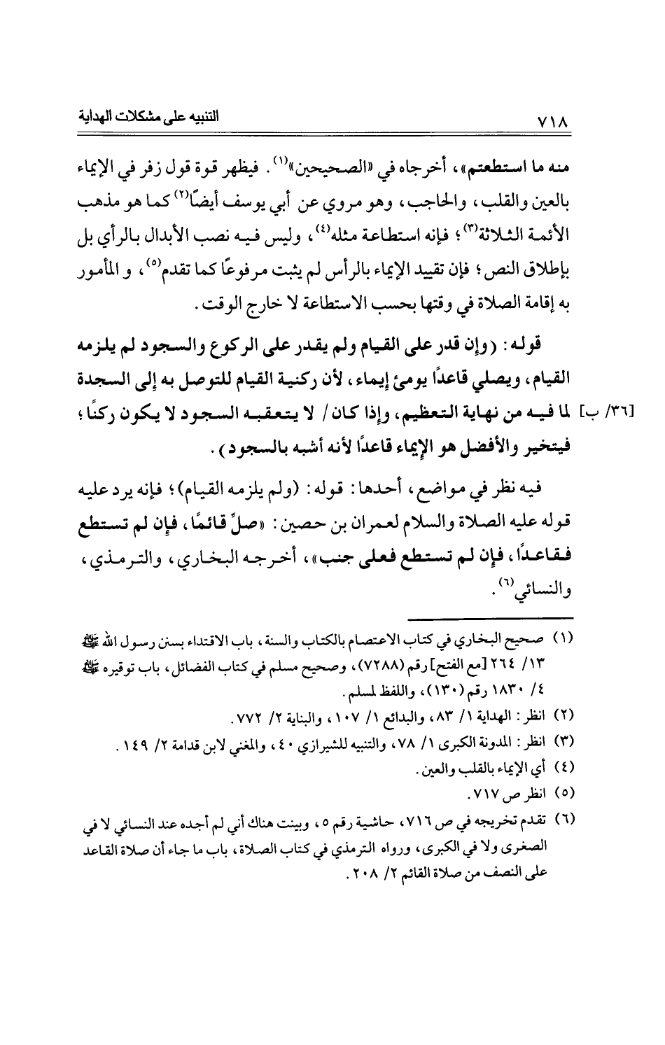 منه ما استطعتم"، أخرجاه في "الصحيحين". فيظهر قوة قول زفر في الإيماء بالعين والقلب، والحاجب، وهو مروي عن أبي يوسف أيضاً كما هو مذهب الأئمة الثلاثة؛ فإنه استطاعة مثله، وليس فيه نصب الأبدال بالرأي بل بإطلاق النص؛ فإن تقييد الإيماء بالرأس لم يثبت مرفوعاً كما تقدم، والمأمور به إقامة الصلاة في وقتها بحسب الاستطاعة لا خارج الوقت.