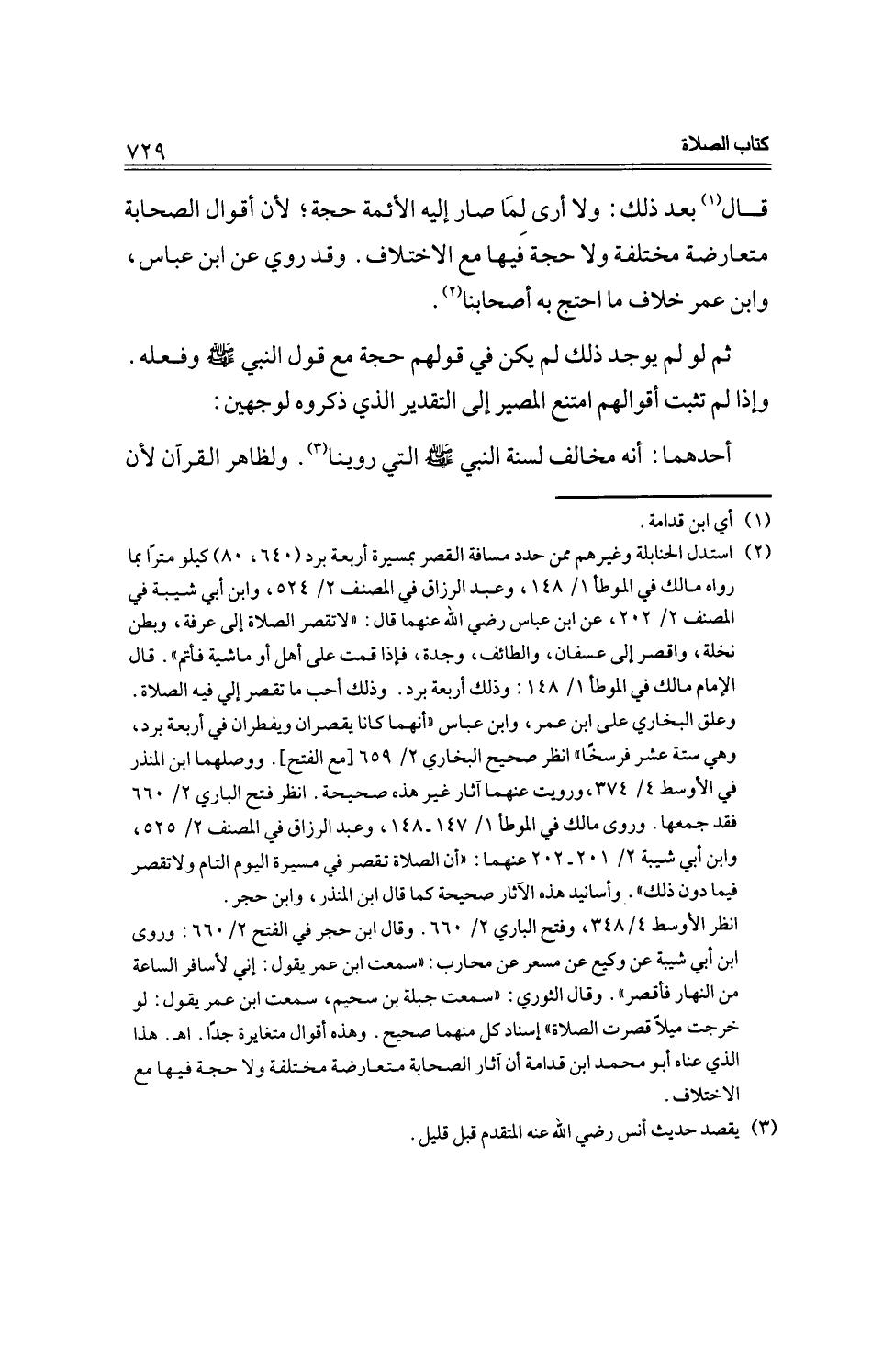 قال بعد ذلك: ولا أرى لما صار إليه الأئمة حجة؛ لأن أقوال الصحابة متعارضة مختلفة ولا حجة فيها مع الاختلاف. وقد روي عن ابن عباس، وابن عمر خلاف ما احتج به أصحابنا.