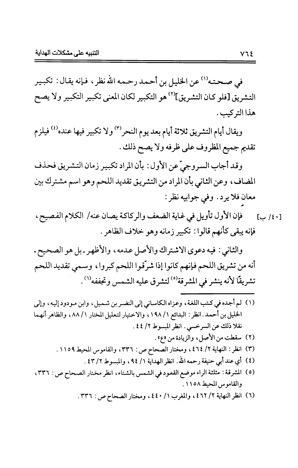 في صحته عن الخليل بن أحمد -رحمه الله- نظر، فإنه يقال: تكبير التشريق [فلو كان التشريق] هو التكبير لكان المعنى تكبير التكبير ولا يصح هذا التركيب.