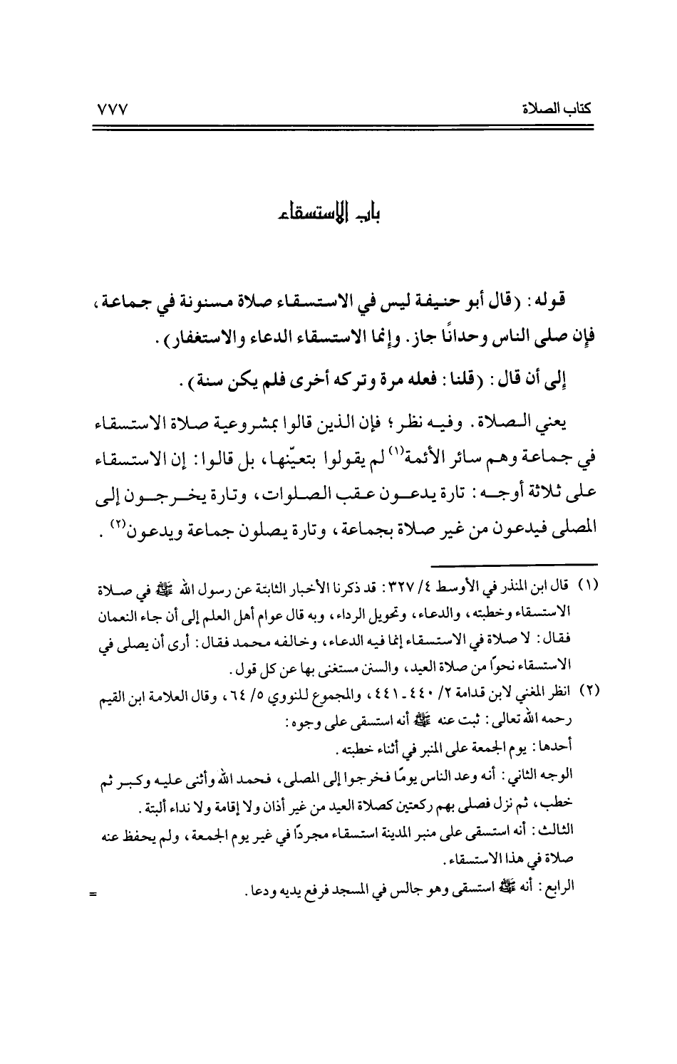 قوله: (قال أبو حنيفة ليس في الاستسقاء صلاة مسنونة في جماعة، فإن صلى الناس وحدانًا جاز، وإنما الاستسقاء الدعاء والاستغفار).