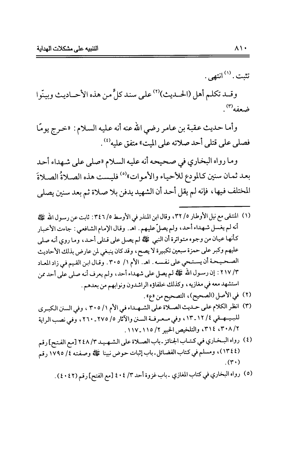 وما رواه البخاري في صحيحه أنه -عليه السلام-: "صلى على شهداء أحد بعد ثمان سنين كالمودع للحياء والموات" فليست هذه الصلاة الصلاة المختلف فيها، فإنه لم يقل أحد أن الشهيد يدفن بلا صلاة ثم بعد سنين يصلى