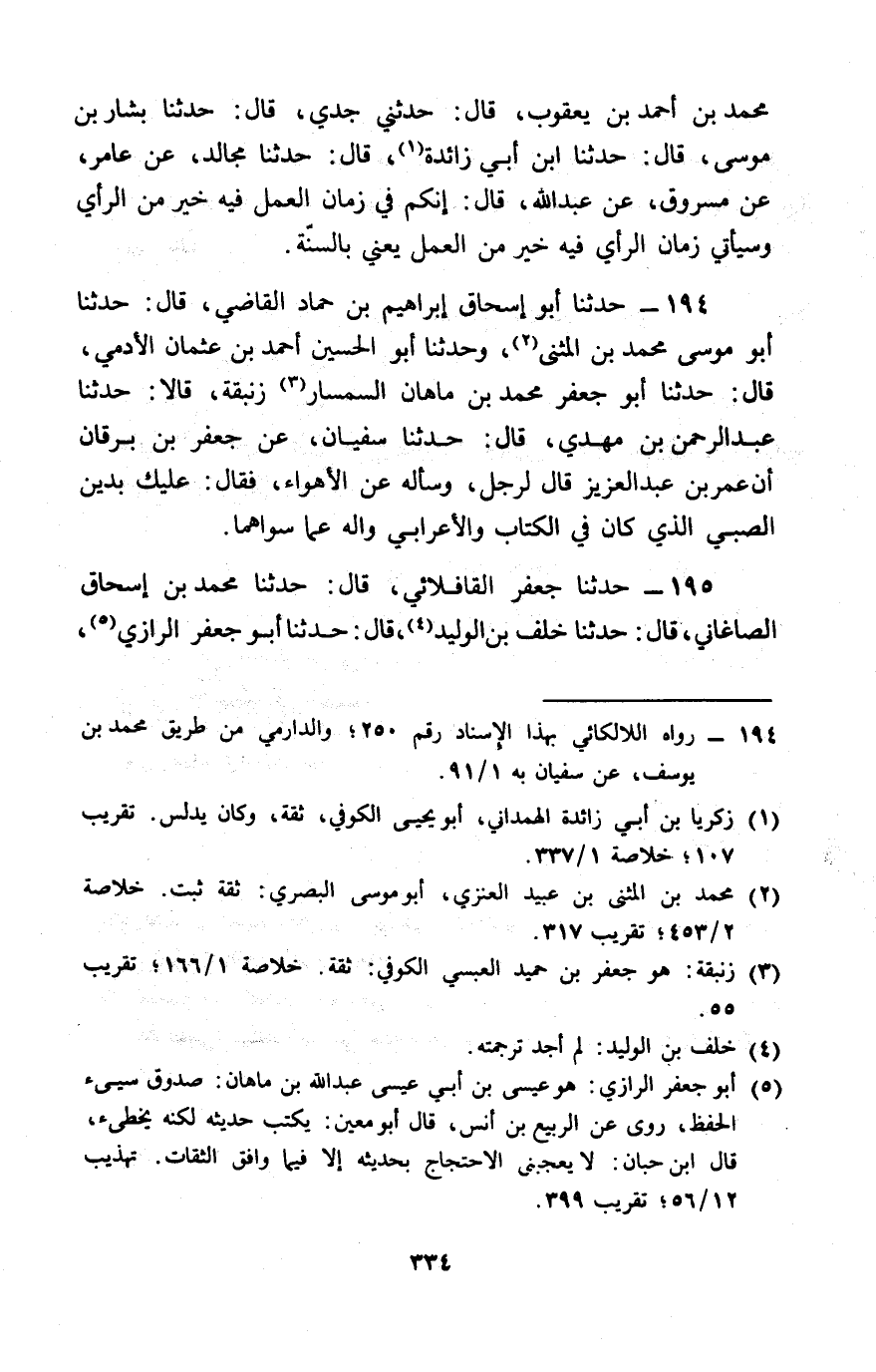 194 - حَدَّثَنَا أَبُو إِسْحَاقَ إِبْرَاهِيمُ بْنُ حَمَّادٍ الْقَاضِي، قَالَ: حَدَّثَنَا أَبُو مُوسَى مُحَمَّدُ بْنُ الْمُثَنَّى، وَحَدَّثَنَا أَبُو الْحُسَيْنِ أَحْمَدُ بْنُ عُثْمَانَ الْأَدَمِيُّ، قَالَ: حَدَّثَنَا أَبُو جَعْفَرٍ مُحَمَّدُ بْنُ مَاهَانَ السِّمْسَارُ زَنْبَقَةُ، قَالَا: حَدَّثَنَا عَبْدُ الرَّحْمَنِ بْنُ مَهْدِيٍّ، قَالَ: حَدَّثَنَا سُفْيَانُ، عَنْ جَعْفَرِ بْنِ بُرْقَانَ، أَنَّ عُمَرَ بْنَ عَبْدِ الْعَزِيزِ، قَالَ لِرَجُلٍ وَسَأَلَهُ عَنِ الْأَهْوَاءِ، فَقَالَ: «§عَلَيْكَ بِدِينِ الصَّبِيِّ الَّذِي كَانَ فِي الْكُتَّابِ، وَالْأَعْرَابِيِّ، وَالْهَ عَمَّا سِوَاهُمَا»