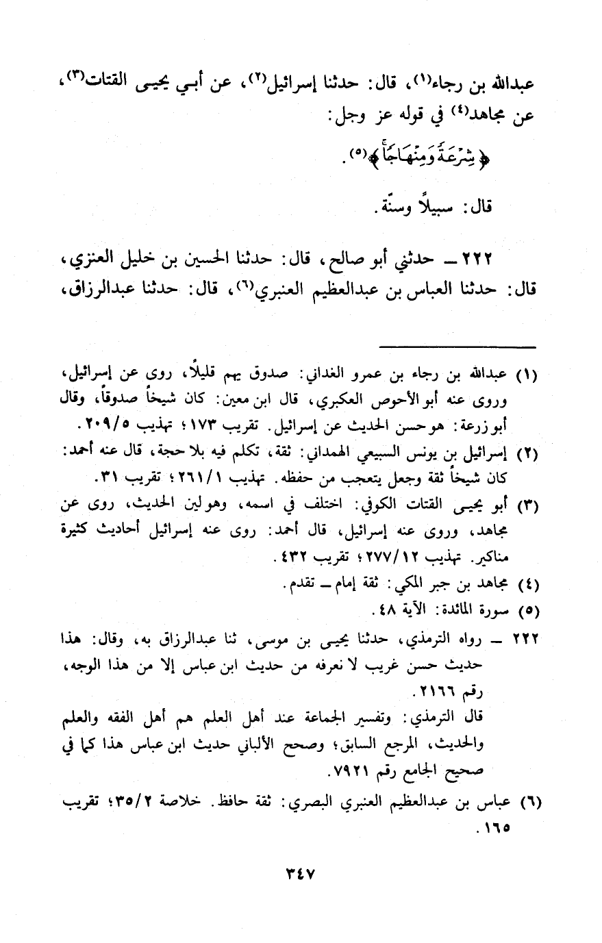 222 - حَدَّثَنِي أَبُو صَالِحٍ، قَالَ: حَدَّثَنَا الْحُسَيْنُ بْنُ خَلِيلٍ الْعَنَزِيُّ، قَالَ: حَدَّثَنَا الْعَبَّاسُ بْنُ عَبْدِ الْعَظِيمِ الْعَنْبَرِيُّ، قَالَ: حَدَّثَنَا عَبْدُ الرَّزَّاقِ، -[348]- قَالَ: حَدَّثَنَا إِبْرَاهِيمُ بْنُ مَيْمُونٍ الصَّنْعَانِيُّ، وَكَانَ يُسَمَّى قُرَيْشَ الْيَمَنِ وَكَانَ مِنَ الْعَابِدِينَ الْمُجْتَهِدِينَ قَالَ: خَافَهُ أَبُو جَعْفَرٍ فَبَعَثَ إِلَيْهِ، فَأُتِيَ بِهِ فَقَدِمَ بِهِ الْعِرَاقَ، فَلَمَّا دَخَلَ عَلَيْهِ قَالَ: وَاللَّهِ لَقَدْ أَخْبَرَنِي ابْنُ طَاوُسٍ، عَنْ أَبِيهِ، قَالَ: سَمِعْتُ ابْنَ عَبَّاسٍ، يَقُولُ: قَالَ رَسُولُ اللَّهِ صَلَّى اللَّهُ عَلَيْهِ وَسَلَّمَ: § «يَدُ اللَّهِ عَلَى الْجَمَاعَةِ»