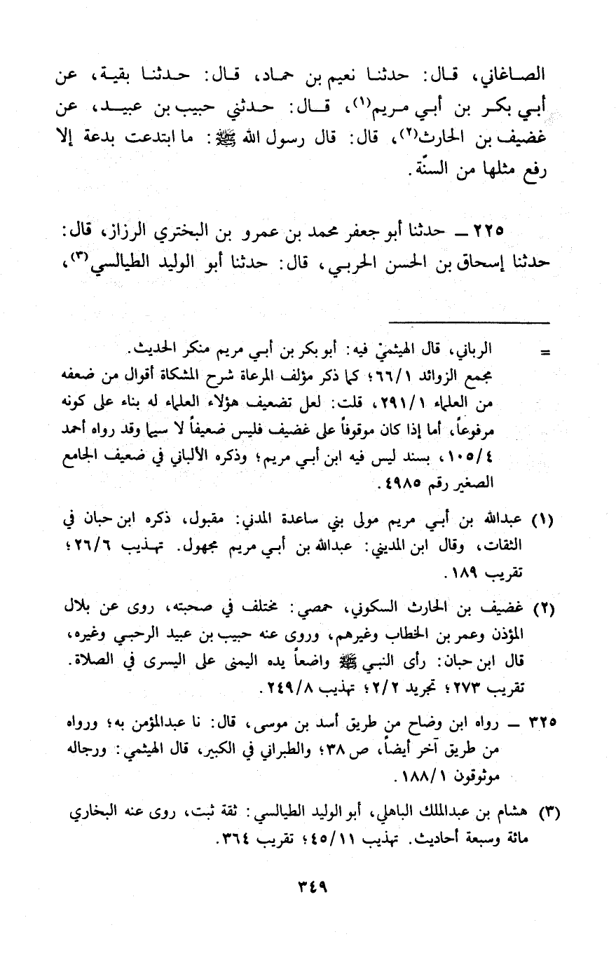 225 - حَدَّثَنَا أَبُو جَعْفَرٍ مُحَمَّدُ بْنُ عَمْرِو بْنِ الْبَخْتَرِيِّ الرَّزَّازُ، قَالَ: حَدَّثَنَا إِسْحَاقُ بْنُ الْحَسَنِ الْحَرْبِيُّ، قَالَ: حَدَّثَنَا أَبُو الْوَلِيدِ الطَّيَالِسِيُّ، -[350]- سَأَلَهُ بِشْرُ بْنُ الْحَارِثِ، قَالَ: حَدَّثَنَا عَبْدُ الْمُؤْمِنِ بْنُ عَبْدِ اللَّهِ، قَالَ: حَدَّثَنَا مَهْدِيُّ بْنُ أَبِي مَهْدِيٍّ، عَنْ عِكْرِمَةَ، عَنِ ابْنِ عَبَّاسٍ، قَالَ: § «لَا يَأْتِي عَلَى النَّاسِ زَمَانٌ إِلَّا أَحْدَثُوا فِيهِ بِدْعَةً، وَأَمَاتُوا فِيهِ سُنَّةً حَتَّى تَحْيَا الْبِدَعُ، وَتَمُوتَ السُّنَنُ»