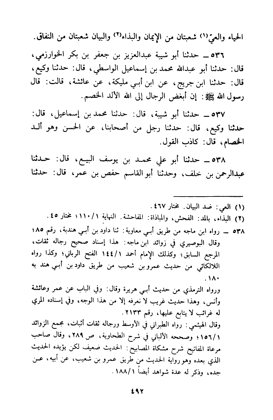 537 - حَدَّثَنَا أَبُو شَيْبَةَ , قَالَ: حَدَّثَنَا مُحَمَّدُ بْنُ إِسْمَاعِيلَ , قَالَ: حَدَّثَنَا وَكِيعٌ , قَالَ: حَدَّثَنَا رَجُلٌ , مِنْ أَصْحَابِنَا , عَنِ الْحَسَنِ: وَهُوَ " §أَلَدُّ الْخِصَامِ قَالَ: كَاذِبُ الْقَوْلِ "