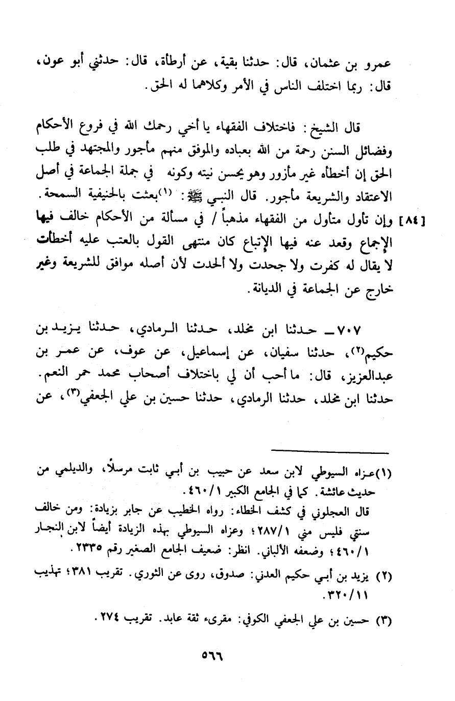 707 - حَدَّثَنَا ابْنُ مَخْلَدٍ , حَدَّثَنَا الرَّمَادِيُّ , حَدَّثَنَا حُسَيْنُ بْنُ عَلِيٍّ الْجُعْفِيُّ , عَنْ -[567]- مُوسَى الْجُهَنِيِّ قَالَ: كَانَ إِذَا ذُكِرَ عِنْدَ طَلْحَةَ الِاخْتِلَافُ قَالَ: " §لَا تَقُولُوا: الِاخْتِلَافُ , وَلَكِنْ قُولُوا: السَّعَةُ "